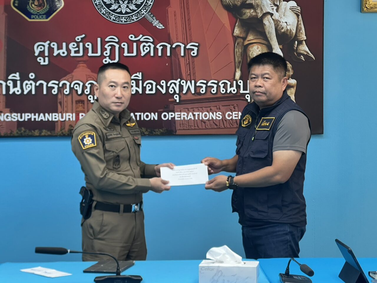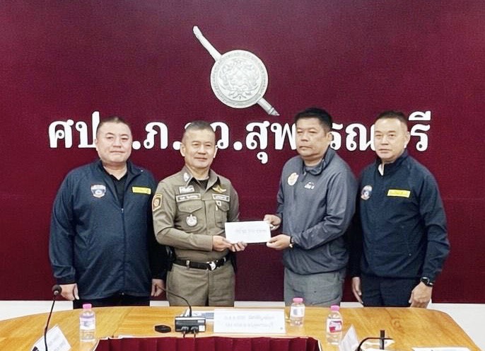 พ.ต.อ.กฤศ จันทร์สว่าง ,พ.ต.อ.พีระ อัศวพิบูลย์ผล รอง ผบก.ภ.จว.สุพรรณบุรี พร้อมด้วย พ.ต.อ .ครรชิต โขวัฒนชัย ผกก.สืบสวน ภ.จว.สุพรรณบุรี มอบเงินสนับสนุนการดำเนินการเกี่ยวกับการปราบปรามอาชญากรรมทางเทคโนโลยีสารสนเทศ ให้แก่ สภ.เมืองสุพรรณบุรี โดยมี พ.ต.ท.พีระพงษ์ จบศรี รอง ผกก.สส.สภ.เมืองสุพรรณบุรี เป็นผู้แทนรับมอบ ที่ ห้องประชุม 2 ภ.จว.สุพรรณบุรี