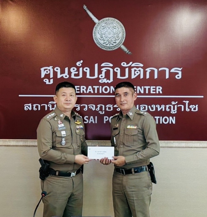 พ.ต.อ.ชัยชาญพัฒน์ ยติรัตนกัญญา ผกก.สภ.หนองหญ้าไซ จ.สุพรณบุรี มอบเงินรางวัล การจับกุมอาวุธปืน ตามโครงการตำรวจสุพรรณทำดี เพื่อเป็นขวัญกำลังใจ แต่ละแผนกงานให้กับเจ้าหน้าที่ตำรวจในสังกัด สภ.หนองหญ้าไซ ที่ประชุม ศปก. สภ.หนองหญ้าไซ