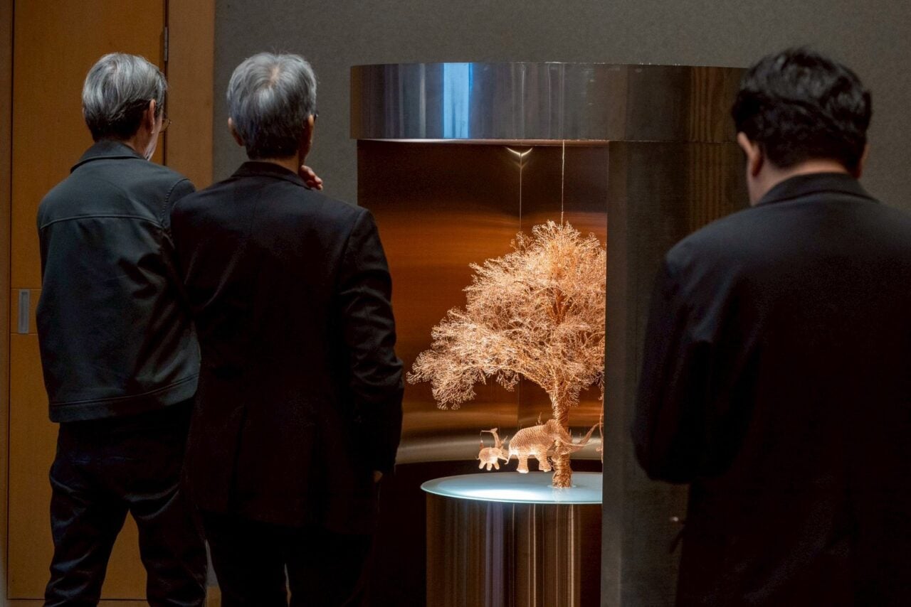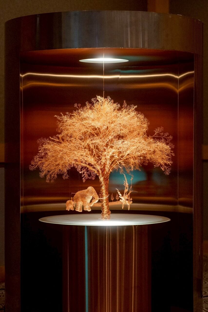 สำหรับผลงานรางวัลช้างเผือก “กิ่งก้านแห่งยุคสมัย” โดย ธีรพล สีสังข์ เทคนิคถัก ขด ขมวด เส้นใยโลหะ : วัฒนธรรมคือต้นไม้ใหญ่ที่มีลมหายใจ เริ่มต้นจากการหยั่งรากในภูมิปัญญา สั่งสมความแข็งแกร่งเป็นลำต้นแห่งอัตลักษณ์ และแผ่กิ่งก้นปรับตัวตามยุคสมัย เพื่อผลิดอกออกผลเป็นคุณค่าใหม่ที่งดงามและยั่งยืนแก่มวลมนุษย์