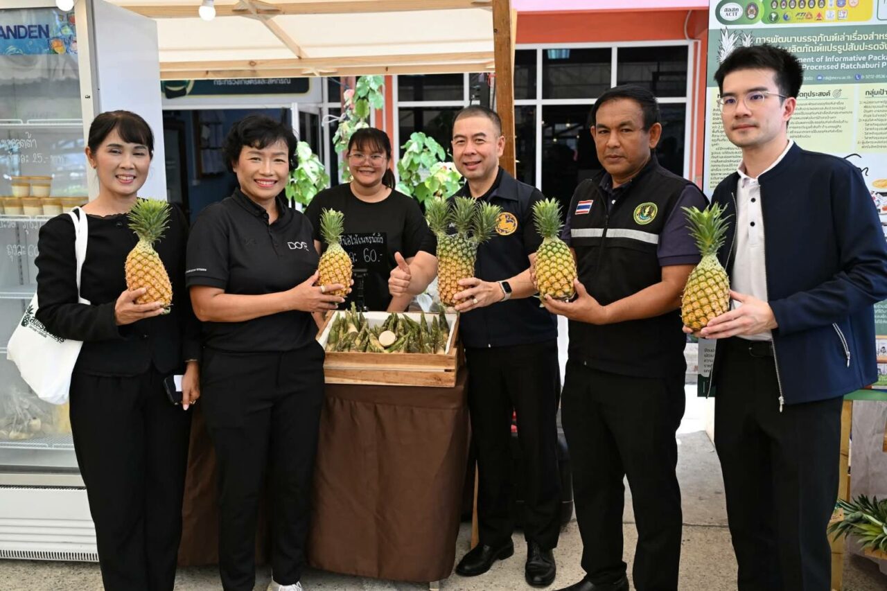 สับปะรดราชบุรี…. คมกริช เจริญพัฒนสมบัติ รอง ผวจ.ราชบุรี เปิดงาน “ปสช.สับปะรดราชบุรี” มีการออกร้านจำหน่ายสินค้าและผลิตภัณฑ์แปรรูปจากสับปะรดราชบุรีคุณภาพดี กิจกรรมมุ่งเน้นการเพิ่มประสิทธิภาพการผลิตพืชไร่ (มันสำปะหลัง และสับปะรด) และส่งเสริมการพัฒนาการผลิตสินค้าอัตลักษณ์พื้นถิ่น ให้เป็นที่รู้จักอย่างแพร่หลาย เพิ่มช่องทางการจัดจำหน่ายและสร้างรายได้ที่ยั่งยืน ที่ตลาดเกษตรกรจังหวัดราชบุรี ต.หน้าเมือง อ.เมือง จ.ราชบุรี (รังสี ลิมปิโชติกุล จ.ราชบุรี)