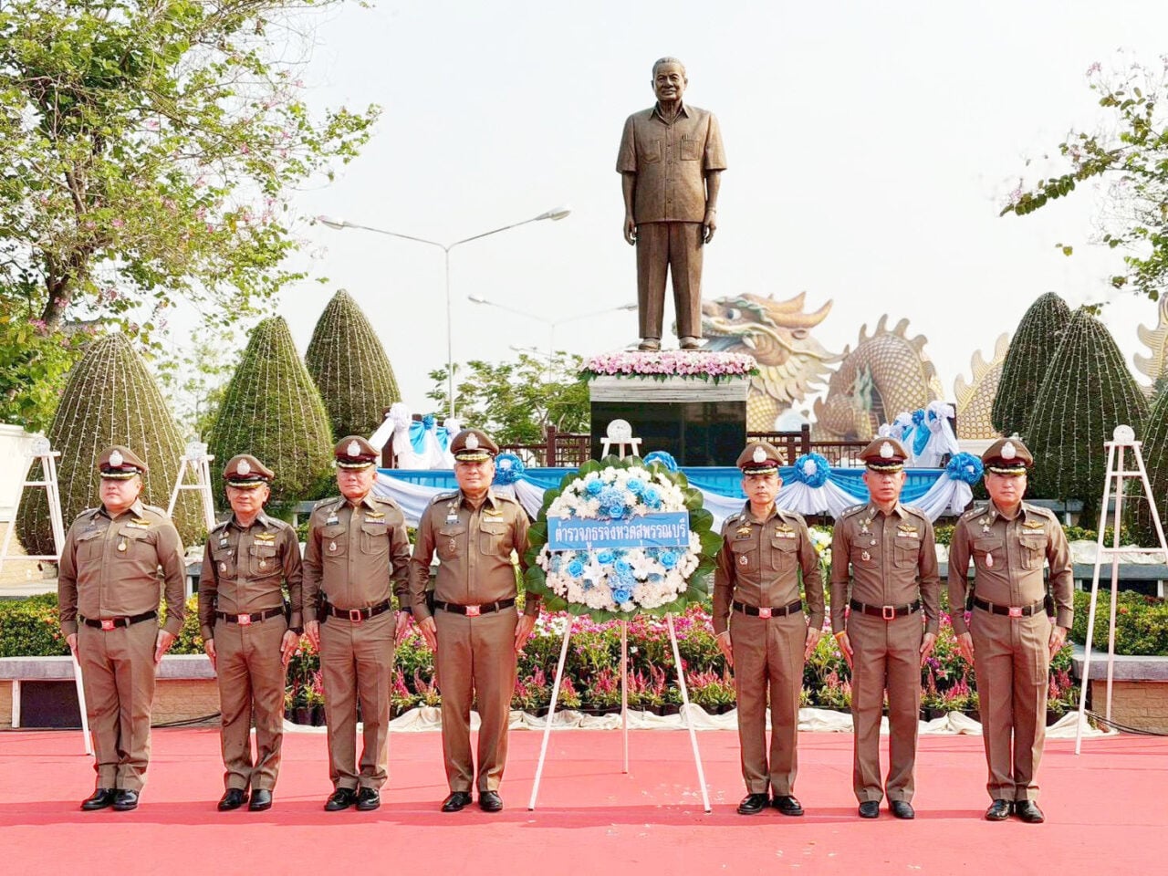 พล.ต.ต.วัชรินทร์ ประสพดี ผบก.ภ.จว.สุพรรณบุรี พร้อมด้วย รอง ผบก.ภ.จว.สุพรรณบุรี และ ผกก.สภ.เมืองสุพรรณบุรี ร่วมพิธีวางพวงดอกไม้ 10 ปี การถึงอนิจกรรม เพื่อระลึกถึงเกียรติคุณ ฯพณฯ บรรหาร ศิลปอาชา นายกรัฐมนตรีคนที่ 21 ที่ อนุสาวรีย์ ฯพณฯ บรรหาร ศิลปอาชา อุทยานสัจจะและกตัญญู ศาลเจ้าพ่อหลักเมือง สุพรรณบุรี