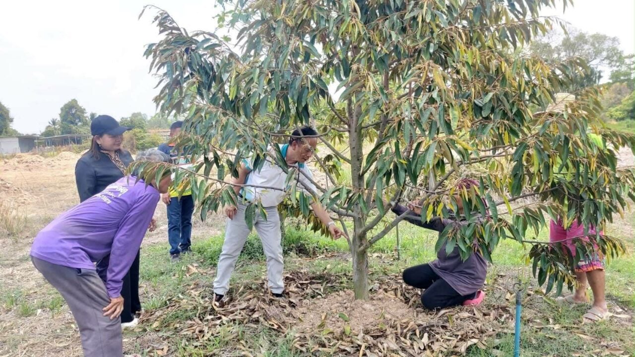 @ จ.ศรีสะเกษ…เร่งแก้สถานการณ์พืชผลทางเกษตรที่ได้รับผลกระทบจากสภาพ “อากาศร้อนจัด” ได้แก่ ทุเรียน ในพื้นที่ ต.ยางชุมใหญ่ และต.ลิ้นฟ้า รวมถึงพื้นที่ปลูกข้าวนาปรัง ต.ยางชุมน้อย อ.ยางชุมน้อย…โดย “นายสุชาติ กลิ่นทองหลาง” เกษตรจังหวัด มอบหมายให้ นายกิตติศักดิ์ วิมลสุข หัวหน้ากลุ่มอารักขาพืช พร้อมด้วย นางสาวพัชรพร ถึงกลิ่น และนางสาวอัมภาพันธ์ ประดู่ นักวิชาการส่งเสริมการเกษตรชำนาญการ กลุ่มอารักขาพืช ลงพื้นที่ร่วมกับเจ้าหน้าที่สำนักงานเกษตรอำเภอยางชุมน้อย เพื่อให้คำแนะนำในการดูแลรักษา การจัดการแปลง การให้น้ำ ให้เหมาะสมกับห้วงการเจริญเติบโตของพืชโดยสวนทุเรียนเน้นการบริหารจัดการน้ำให้เพียงพอ ให้น้ำสม่ำเสมอแต่ไม่แฉะเกินไป การใช้เศษวัชพืชคลุมโคนต้นเพื่อลดอุณหภูมิและความชื้นในดิน ฯลฯ