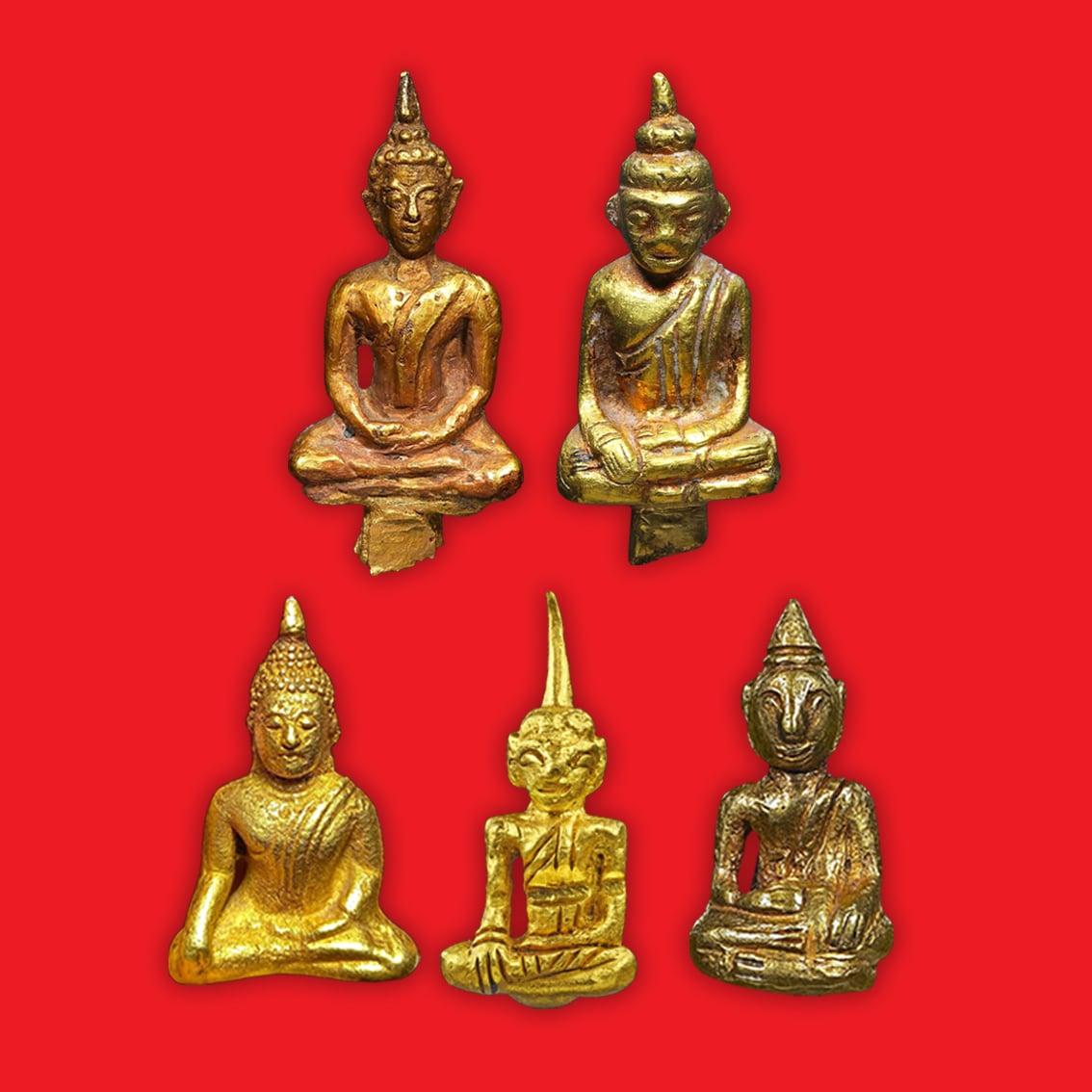 พระยอดธง เป็นพระขนาดเล็กที่มีมาตั้งแต่สมัยอยุธยาตอนกลางช่วงพุทธศตวรรษที่ 21–23 มีบันทึกในใบลานเงินใบลานทองไว้ว่า “สมเด็จพระนเรศวรมหาราช” หรือ “พระองค์ดำ” กษัตริย์นักรบเป็นผู้สถาปนา (สร้าง) พระยอดธงเพื่อบรรจุยอดธงนำทัพทำสงครามกับพม่ารามัญ เพื่อเป็นขวัญกำลังใจของทหาร ประมาณ 300–500 ปีล่วงมาแล้ว มีหลายเนื้อ เช่น ทองคำ, เงิน, สำริด และโลหะผสมโบราณ พุทธคุณโดดเด่นในด้านเมตตามหานิยม แคล้วคลาดคงกระพัน ป้องกันอันตราย พลังแห่งความศักดิ์สิทธิ์สามารถคุ้มครองทั้งกองทัพทำให้ชนะข้าศึกได้ แม้ในปัจจุบันศึกสงครามมีน้อย แต่ยังมี “สงครามการค้า-ธุรกิจ” จะช่วยเกื้อหนุนเรื่องเมตตาค้าขาย หรือการแข่งขันด้านธุรกิจการค้าได้เช่นกัน พระยอดธงชุดนี้เนื้อทองคำบริสุทธิ์ หายากมีมูลค่าสูง ใน 5 องค์นี้ มี 1 องค์ เป็นพิมพ์ “เพชรกลับ” คือมือสลับจากปางมารวิชัยปกติกลับอีกด้านหนึ่ง ถือเป็นเอกลักษณ์เฉพาะตัว พบเห็นได้น้อย ความเชื่อโบราณ “เพชรกลับ” มีพุทธคุณพลิกผันจากร้ายกลายเป็นดี แก้เคราะห์แก้ปีชง เคราะห์หนักให้เบาลง พลิกดวง เสริมโชคลาภ และเปลี่ยนสถานการณ์ให้ดีขึ้น ขอบคุณ Kp Kirttapath แห่งพระกฤตาภินิหาร เอื้อเฟื้อภาพ สนใจศึกษาเชิญติดต่อกันได้ทุกวัน