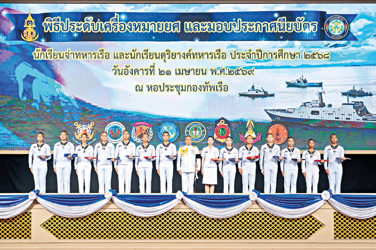 @@… กิจกรรมทั่วไป พล.ร.อ.ไพโรจน์ เฟื่องจันทร์ ผบ.ทร. ออกมาย้ำจุดยืน ’ไม่ถอยแม้ก้าวเดียว“ หากเกิดการสู้รบ นอกจากนี้ผบ.ทร. ยังไปร่วมเป็นประธานในพิธี ประดับเครื่องหมายยศ และ มอบประกาศนียบัตรให้แก่นักเรียนจ่า (นรจ.) และนักเรียนดุริยางค์ (นดย.) สำเร็จการศึกษาประจำปี 2568 ถือว่าเริ่มเป็น “จ่าตรีใหม่” จาก รร.ชุมพลทหารเรือ, รร.สื่อสารและเทคโนโลยีสารสนเทศ, รร.ทหารนาวิกโยธิน, รร.อิเล็กทรอนิกส์, รร.พลาธิการ, รร.นาวิกเวชกิจ, รร.การขนส่งทหารเรือ, และรร.ดุริยางค์ กองดุริยางค์ทหารเรือ ณ ห้องเจ้าพระยา หอประชุมกองทัพเรือ เขตบางกอกใหญ่ ทั้งนี้มีผู้เข้ารับการประดับเครื่องหมายยศ และมอบประกาศนียบัตร จำนวน 940 นาย ประกอบด้วย นักเรียนจ่า 929 นาย และนักเรียนดุริยางค์ 11 นาย ด้าน พล.ร.ท.พนม ควรประดิษฐ์ ผบ.โรงเรียนนายเรือ ต้อนรับหมู่เรือฝึกนักเรียนนายเรือชั้นปีที่ 1-3 ประจำปี 2568 เพื่อให้นักเรียนผู้บังคับบัญชาคุ้นชิน เจนทะเล โดยมี พล.ร.ต.ชลิต บัวทอง รอง ผบ.รร.นร./ผบ.หมู่เรือฝึก รร.นร./นำนักเรียนทุกนายเดินทางกลับมาจากการฝึกภาคปฏิบัติในทะเลต่างประเทศ ส่วน พล.ร.ต.สถาพร วาจรัตน์ เสนาธิการทัพเรือภาค 3 จ.ภูเก็ต รับการเยี่ยมคำนับจาก Cdr. Siddharth Chaudhary ผู้บังคับหมู่เรือ INS SUNAYNA และคณะ กองทัพเรือประเทศอินเดีย ที่นำเรือเข้ามาจอดเทียบท่า ณ ท่าเรือน้ำลึกภูเก็ต