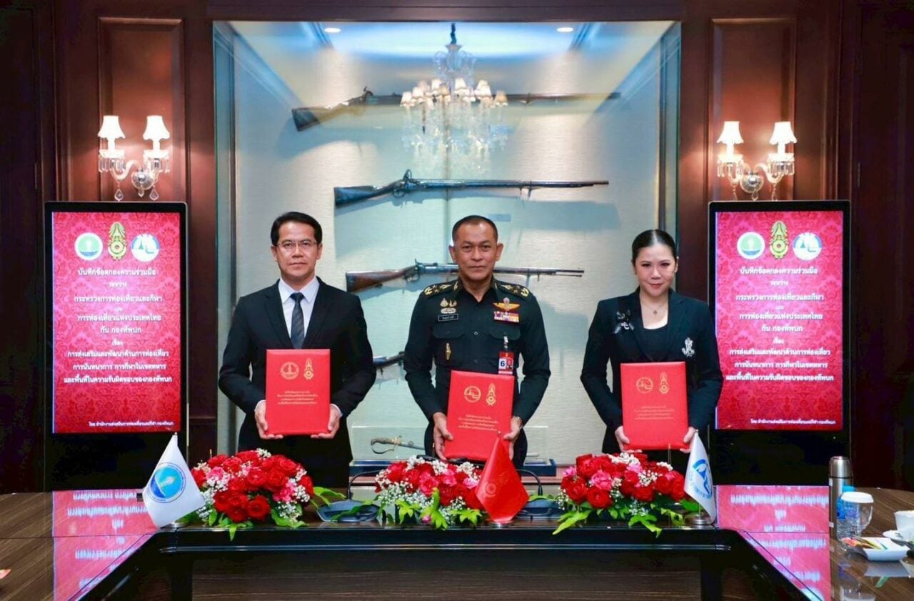 @@… ส่วนที่ห้องประชุม อาคารศรีสิทธิสงคราม อาคารพิพิธภัณฑ์กองทัพบก ภายในกองบัญชาการกองทัพบก พล.อ.ชิษณุพงศ์ รอดศิริ รอง ผบ.ทบ.ผู้แทน ผบ.ทบ. ร่วมเป็นสักขีพยานในพิธีลงนามบันทึกข้อตกลงความร่วมมือ “การส่งเสริมและพัฒนาด้านการท่องเที่ยวการนันทนาการ การกีฬาในเขตทหาร และพื้นที่ในความรับผิดชอบของกองทัพบก” ระหว่างกระทรวงการท่องเที่ยวและกีฬา และกองทัพบก และพิธีลงนามบันทึกข้อตกลงความร่วมมือ ร่วมกับ นายบุญเสริม ขันแก้ว รองอธิบดีกรมการท่องเที่ยว ผู้แทนปลัดกระทรวงการท่องเที่ยวและกีฬา และ น.ส.ฐาปนีย์ เกียรติไพบูลย์ ผู้ว่าการการท่องเที่ยวแห่งประเทศไทย โดยมี พล.ท.พลศักดิ์ ศรีเพ็ญ ผอ.สำนักงานส่งเสริมการท่องเที่ยวและกีฬากองทัพบก รายงานวัตถุประสงค์ของงาน ในการนี้ทั้งสองฝ่ายมีวัตถุประสงค์ร่วมกัน โดยกองทัพบกสนับสนุนนโยบายของรัฐบาล ในระบบบูรณาการแบบกลุ่ม (Cluster) ระหว่างหน่วยงาน และสภาวะจากสถานการณ์โลก ที่ต้องช่วยกันประหยัดค่าใช้จ่าย รวมพลังปรับบทบาทกองทัพ สนับสนุนและอำนวยความสะดวกแก่ประชาชน เพื่อผลักดันการท่องเที่ยวและกีฬา โดยกองทัพบกสนับสนุนการใช้แหล่งพื้นที่ท่องเที่ยวและกีฬา ในพื้นที่ที่กองทัพบกรับผิดชอบมากกว่า 400 แห่งทั่วประเทศ ภายใต้ค่าขวัญ “ท่องเที่ยวเขตทหาร ทุกสถานที่ ล้วนมีตำนาน“