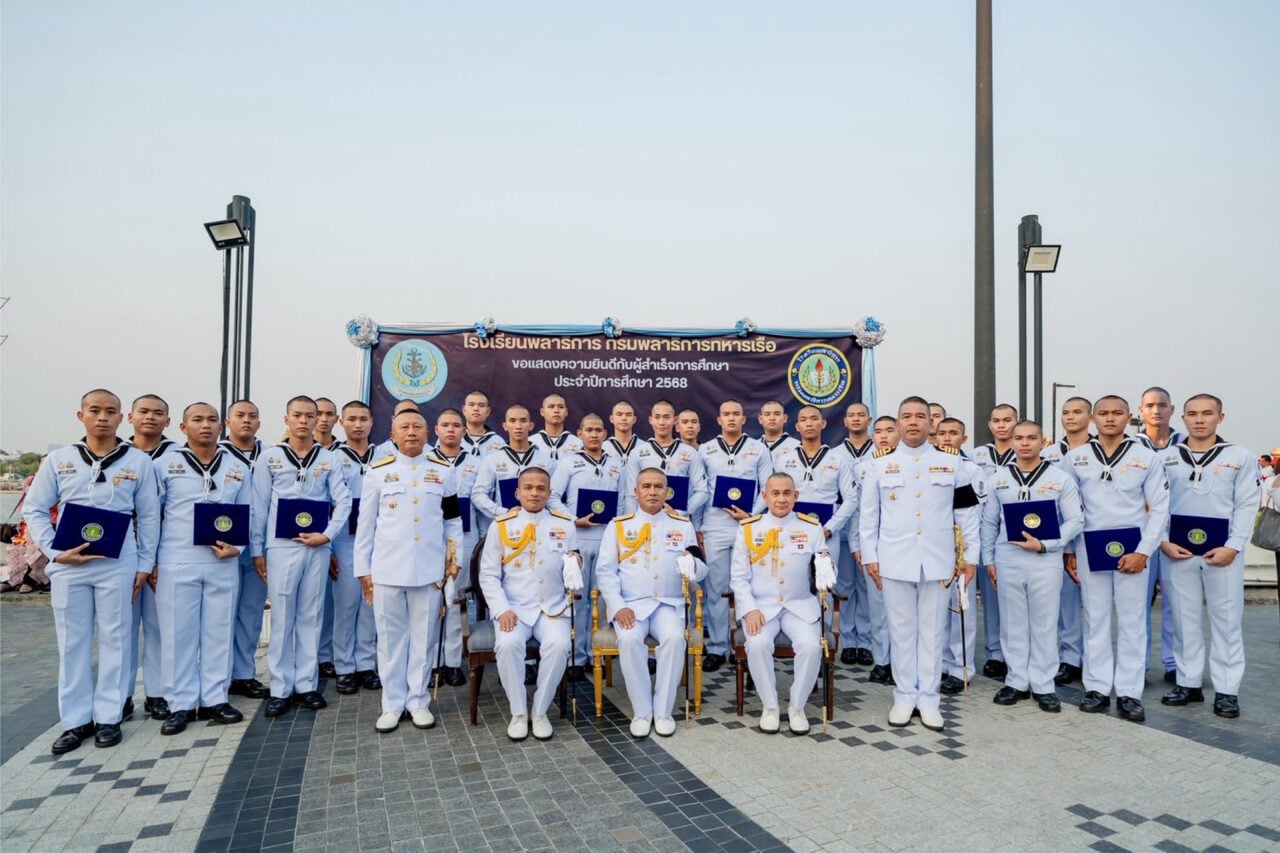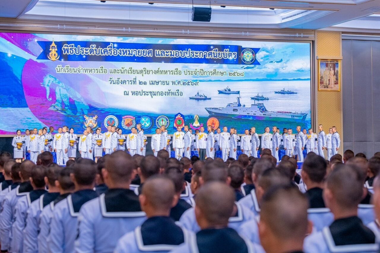 จบนักเรียนจ่า “ทร.”…พล.ร.อ.ไพโรจน์ เฟื่องจันทร์ ผบ.ทร. เป็นประธานในพิธีประดับเครื่องหมายยศ และมอบประกาศนียบัตร ให้แก่ นักเรียนจ่าทหารเรือ (นรจ.) และ นักเรียนดุริยางค์ (นดย.) จบการศึกษาประจำปี 2568 จำนวน 940 นาย (นรจ. 929 นาย, นดย.11 นาย) ณ ห้องเจ้าพระยา หอประชุมกองทัพเรือ เขตบางกอกใหญ่