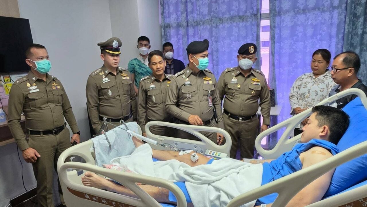 ขวัญกำลังใจ….พล.ต.ท.กฤตธาพล ยี่สาคร ผบช.ภาค 5 มอบหมายให้ พล.ต.ต.สุทธิพงศ์ เป๊กทอง รอง.ผบช.ภาค 5 พร้อมด้วย พล.ต.ต.ยุทธนา แก่นจันทร์ ผบก.ภ.จว.เชียงใหม่, พ.ต.อ.สุรมนต์ เฉลิมจันทร์ ผกก.สภ.สันกำแพง และ พ.ต.อ.สิโณทัย ลิลิตธรรม ผกก.สภ.ภูพิงคราชนิเวศน์ เยี่ยม ส.ต.ท.ณัฎฐพงศ์ สุพรรณทวา ผู้บังคับหมู่ (ป.) สภ.สันกำแพง ซึ่งปฏิบัติหน้าที่สายตรวจรถจักรยานยนต์ และได้รับบาดเจ็บจากการปฏิบัติหน้าที่ คณะผู้บังคับบัญชาได้มอบกระเช้าและเงินช่วยเหลือ เพื่อบำรุงขวัญและกำลังใจแก่ ส.ต.ท.ณัฎฐพงศ์ สุพรรณทวา และครอบครัว ณ โรงพยาบาลมหาราชนครเชียงใหม่