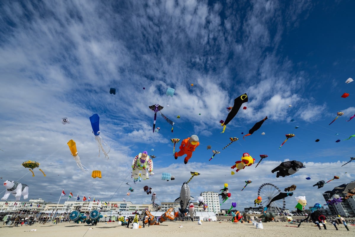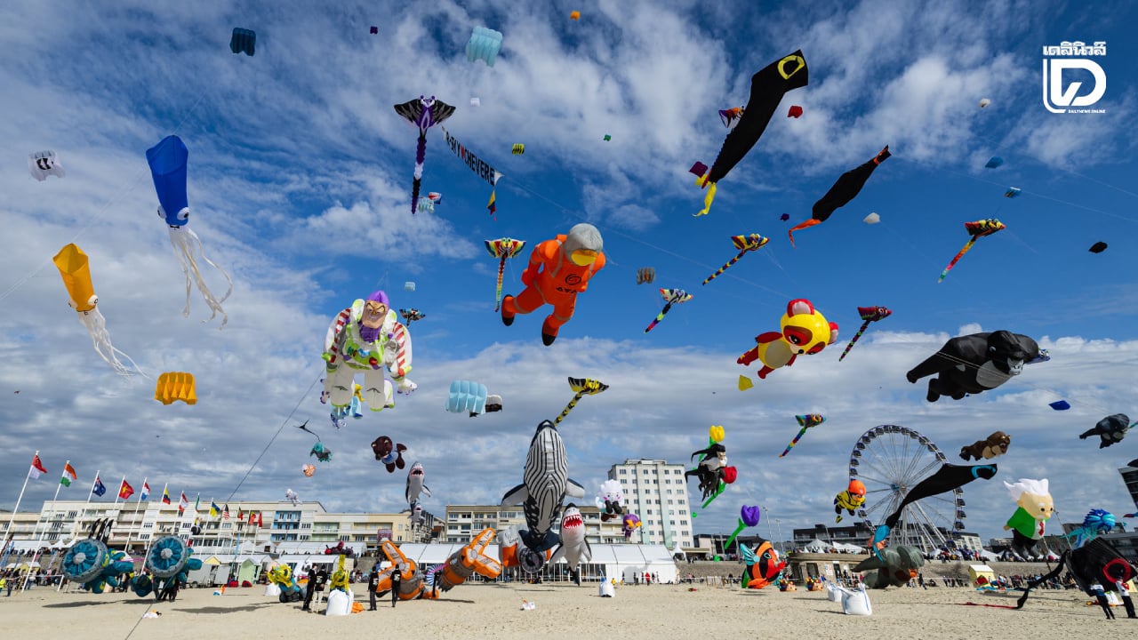 สีสันบนท้องฟ้า… ผู้เข้าร่วมงานเทศกาลว่าวนานาชาติครั้งที่ 39 (RICV) ปล่อยว่าวขึ้นสู่ท้องฟ้า ณ ชายหาดแบร์ก-ซูร์-แมร์ ทางตอนเหนือของฝรั่งเศส เมื่อวันที่ 18 เมษายน ในเทศกาลนี้มีผู้เล่นว่าวประมาณ 450 คนจาก 28 ประเทศเข้าร่วมงาน (Sameer Al-DOUMY / AFP)