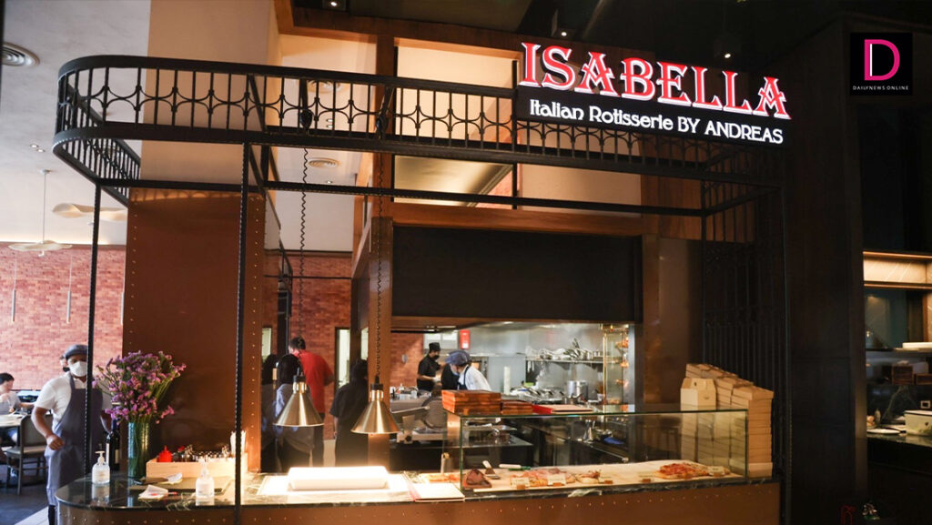 มาถึงร้านที่สี่กันอย่างรวดเร็ว ได้แก่ร้าน “Isabella Italian Rotisserie BY ANDREAS” ร้านอิตาเลี่ยนอีกหนึ่งสาขาของเชฟมากประสบการณ์ คุณอันเดีย โบนิฟาโช ที่บอกเลยว่านอกจากอาหารอิตาเลี่ยนรสชาติดั้งเดิมแล้ว สิ่งที่คุณจะได้เปิดโลกการทานอาหารในคอนเซปต์ Hot Table โดยเมนูแนะนำคือ Italian Style Whole Roasted Organic Chicken ไก่ยัดสมุนไพรหมักด้วยเครื่องเทศอิตาเลี่ยน ที่ถูกอบในเครื่อง Rotisol นำเข้าจากฝรั่งเศส เสิร์ฟพร้อมมันฝรั่ง เครื่องเคียงซอสเกรวี่ไก่หรือน้ำจิ้มแจ่ว ซึ่งเป็นเมนูพิเศษของทาง Mahanakhon Eatery เท่านั้น