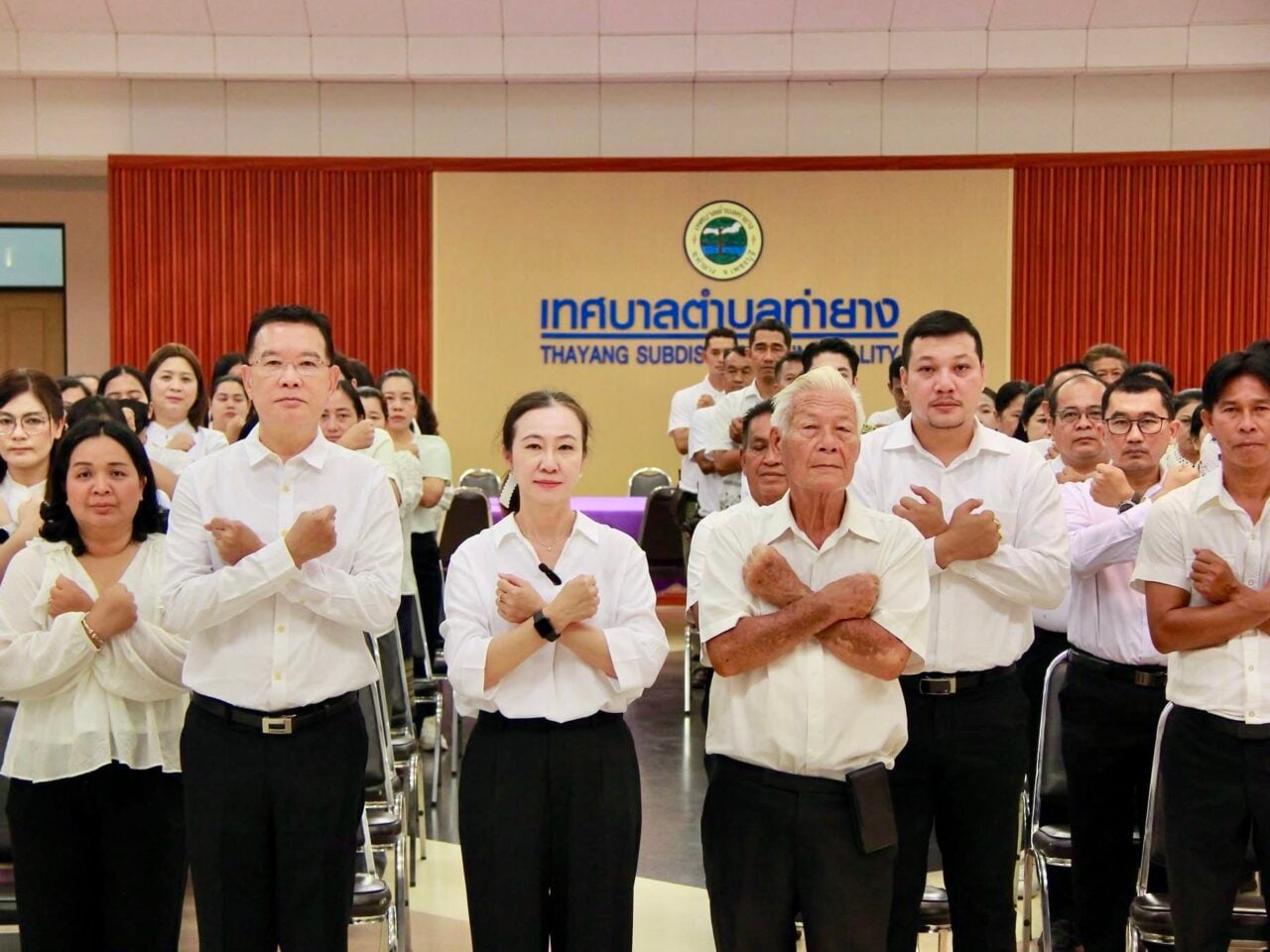 ประกาศเจตนารมณ์…. นฤมล กิจพ่วงสุวรรณ นายก ทต.ท่ายาง พร้อมคณะกล่าวประกาศเจตนารมณ์ งดรับ งดให้ ของขวัญและของกำนัลทุกชนิดจากการปฏิบัติหน้าที่ NO Gift Policy โดยมี ภราดร เวทยนุกูล ปลัด ทต.ท่ายาง กล่าวรายงาน ณ ห้องประชุม ทต.ท่ายาง อ.ท่ายาง จ.เพชรบุรี (ภัทรพงษ์ ปานปิ่นทอง จ.เพชรบุรี)