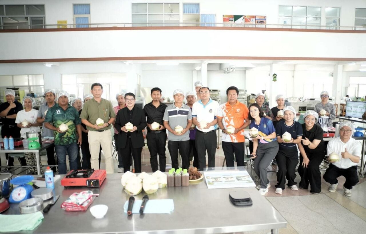 ช่วยเกษตรกร…. ผศ.อรรถพล อุสายพันธ์ อธิการบดี มรภ.หมู่บ้านจอมบึง จ.ราชบุรี เปิดโครงการติวเข้มเกษตรกรแปรรูป “มะพร้าวน้ำหอม” ช่วยเหลือเกษตรกรในพื้นที่ อ.ดำเนินสะดวก ที่กำลังเผชิญปัญหาราคามะพร้าวตกต่ำ ยกระดับมะพร้าวน้ำหอม สร้างรายได้เสริมให้ชุมชน การทำเส้นเจลาตินจากน้ำมะพร้าวแท้ เครื่องดื่มน้ำมะพร้าวผสมเห็ดหูหนู (นวัตกรรมการถนอมอาหารรูปแบบใหม่) ที่อาคารปฏิบัติการเทคโนโลยีการแปรรูปอาหาร มรภ.หมู่บ้านจอมบึง จ.ราชบุรี (รังสี ลิมปิโชติกุล จ.ราชบุรี)