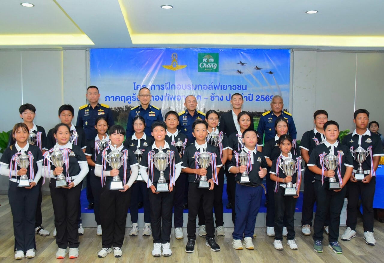 มอบรางวัล…ภาสวร ปีตรังสี ผู้จัดการอาวุโสโครงการกีฬาเพื่อความเป็นเลิศ ไทยเบฟ ไทยทาเล้นท์ บริษัท ไทยเบฟฯ พร้อมด้วย พลอากาศเอก ชาตินนท์ สท้านไผท ประธานอนุกรรมการศูนย์กีฬากองทัพอากาศ ดอนเมือง ร่วมมอบรางวัลให้กับน้อง ๆ เยาวชนที่เข้าอบรม “ช้าง ไทยแลนด์ จูเนียร์ กอล์ฟ คลินิก 2026” ณ ห้องชัยพฤกษ์ สนามกอล์ฟธูปะเตมี