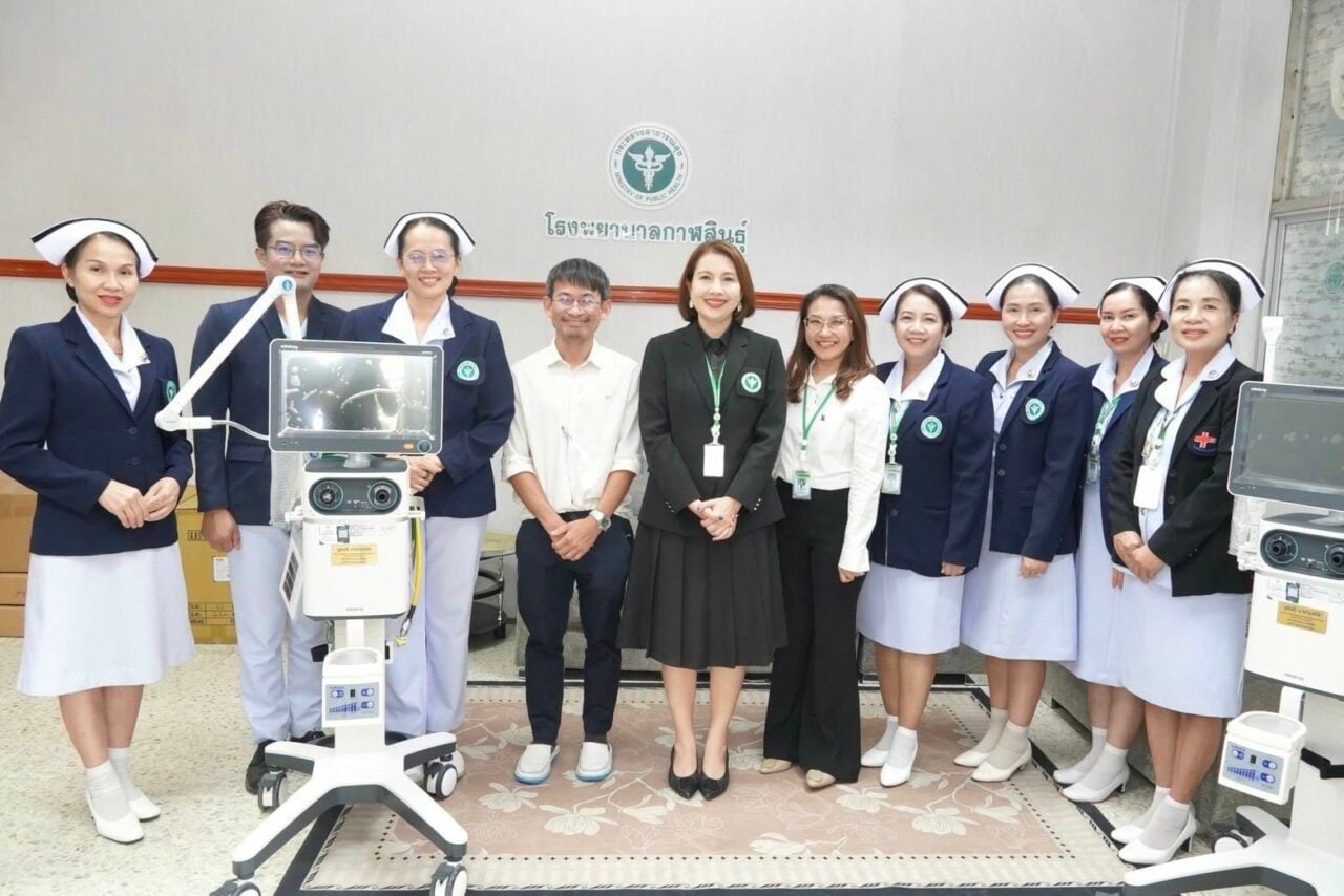 เครื่องช่วยหายใจ… พญ.จารุพรรณ มโนสิทธิศักดิ์ ผอ.รพ.กาฬสินธุ์ พร้อมคณะผู้บริหาร แพทย์ พยาบาล บุคลากร ร่วมรับมอบเครื่องช่วยหายใจชนิดควบคุมด้วยปริมาตร 2 เครื่อง มูลค่า 1,600,000 บาท จากมูลนิธิมาดามแป้ง โดย นวลพรรณ ล่ำซำ ประธานมูลนิธิฯ เพื่อนำไปใช้รักษาพยาบาล และเสริมสร้างประสิทธิภาพดูแลรักษาผู้ป่วย อีกหนึ่งในนามผู้ใหญ่ใจดีมีจิตศรัทธา ที่เล็งเห็นถึงความสำคัญของการพัฒนาระบบสาธารณสุข ช่วยประหยัดงบประมาณของทางราชการ และร่วมเป็นส่วนหนึ่งในการสนับสนุนการดูแลสุขภาพประชาชนอย่างยั่งยืน