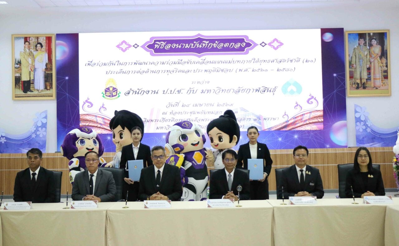 ร่วมขับเคลื่อน … สุรพงษ์ อินทรถาวร เลขาธิการ ป.ป.ช. และ รศ.ดร.สุพรรณ สุดสนธิ์ อธิการบดี ม.กาฬสินธุ์ ร่วมลงนามบันทึกข้อตกลง ที่ห้องพยับหมอก ชั้น 3 อาคารเฉลิมพระเกียรติกรมสมเด็จพระเทพรัตนราชสุดาฯ 70 พรรษาฯ เพื่อร่วมกันพัฒนาความร่วมมือขับเคลื่อนแผนแม่บทภายใต้ยุทธศาสตร์ชาติ ประเด็นการต่อต้านการทุจริตและประพฤติมิชอบ โดยการนำกฎหมาย ป.ป.ช. บรรจุเข้าในหลักสูตรการศึกษาของสาขาวิชานิติศาสตร์ โดยมี พิเศษ นาคะพันธุ์ รองเลขาธิการ ป.ป.ช.ภาค 4 , กุล ภาคเดียว รักษาราชการแทน ผอ.ป.ป.ช. ประจำ จ.กาฬสินธุ์ , ดร.ศักดิ์เกษม ปานะลาด รองอธิการบดี ม.กาฬสินธุ์ , ผศ.ดร.มัลลิกา นาจันทอง คณบดีคณะศิลปศาสตร์ พร้อมคณะผู้บริหาร และผู้ที่เกี่ยวข้องร่วมเป็นสักขีพยาน