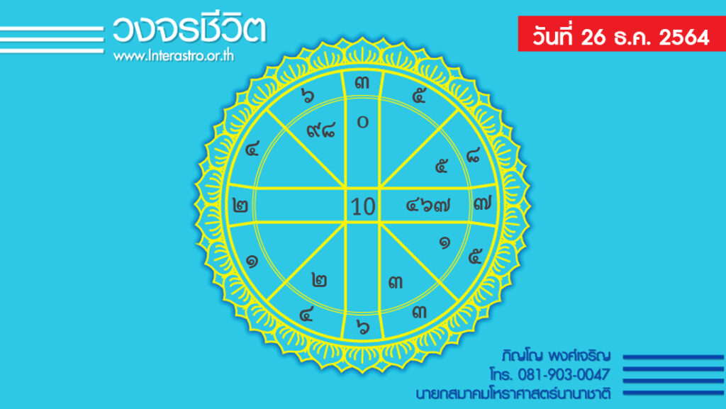 สุริยคติกาล วันที่ 26 ธันวาคม พ.ศ. 2564 ค.ศ. 2021 จันทรคติกาล ตรงกับวันอาทิตย์ แรม 7 ค่ำ เดือน 1 ปีฉลู ตรีศก จุลศักราช 1383 อาทิตย์อุทัย เวลา 06.39 น. เที่ยงจริง เวลา 12.19 น. อาทิตย์ตก เวลา 17.57 น. จันทร์ขึ้น เวลา 00.04 น.