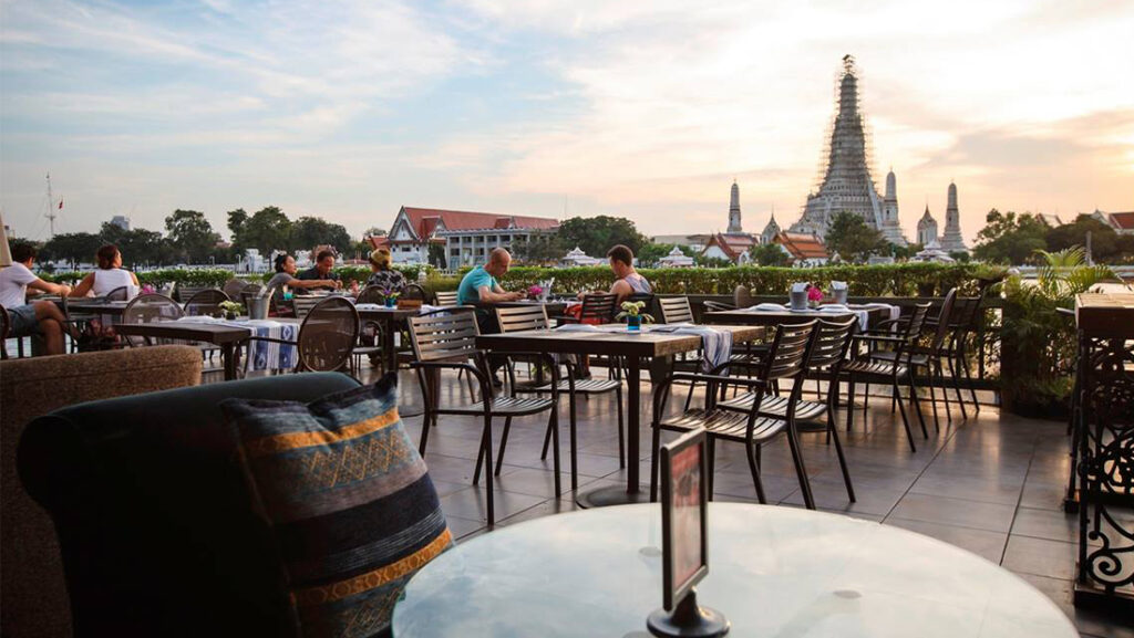 ไปดูยักษ์วัดโพธิ์กันมาแล้ว ก็ขอข้ามฟากมาที่ ร้านอร่อยใกล้ “วัดแจ้ง” หรือวัดอรุณราชวรารามราชวรมหาวิหาร อย่างร้าน “Eat Sight Story” เป็นหนึ่งในไม่กี่ร้านที่สามารถชมความสวยงามของวัดแจ้งเคียงคู่ไปกับแม่น้ำเจ้าพระยาได้อย่างใกล้ชิดที่สุด แถมวิวช่วงพระอาทิตย์ตกดินนั้นก็สวยงามไม่น้อย ส่วนเมนูอาหารของที่นี่ที่เป็นแนวฟิวชั่น สำหรับที่นั่งจะมีทั้งลานกว้างแบบเปิดริมแม่น้ำ และห้องแอร์ด้านในให้ได้เลือกตามความชอบอีกด้วย