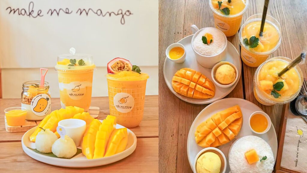 “ร้าน Make Me Mango” คาเฟ่สีเหลืองสุดน่ารักในย่านท่าเตียนใกล้กับวัดพระเชตุพนวิมลมังคลารามราชวรมหาวิหาร หรือที่หลายๆคนรู้จักกันว่า “วัดโพธิ์” นั่นเอง บอกได้เลยว่าร้านนี้เอาใจคนรักมะม่วงเป็นที่สุด เพราะที่นี่เขามีเมนูมะม่วงมากมายให้เลือกจริงๆ ไม่ว่าจะเป็นข้าวเหนียวมะม่วง ไอศกรีมมะม่วง สังขยา แถมยังมีน้ำ แข็งไสบิงซูและน้ำมะม่วงปั่นใส่โยเกิร์ต บอกได้เลยว่าคอรักมะม่วงห้ามพลาด!