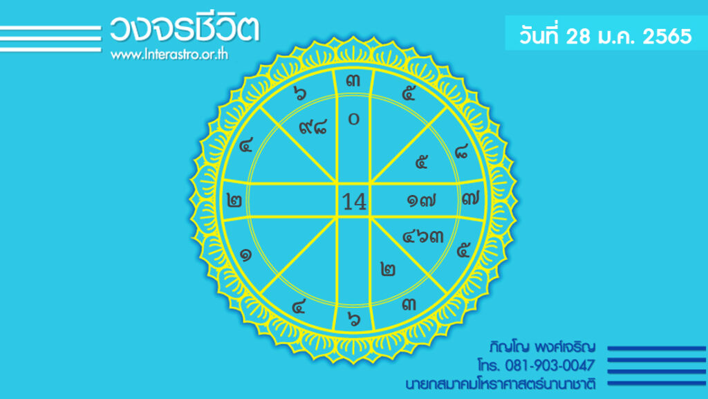 วันนี้ เวลา 00.00-02.42 น. ดาวจันทร์เสวยอนุราชนักษัตรฤกษ์ที่ 17 ประกอบด้วยราชาแห่งฤกษ์ ราชา แปลว่า พระเจ้าแผ่นดิน เวลา 02.43-24.00 น. ดาวจันทร์เสวยเชษฐนักษัตรฤกษ์ที่ 18 ประกอบด้วยสมโณแห่งฤกษ์ สมโณ แปลว่า ผู้สงบ เวลา 00.00-02.46 น.-ทำการมงคลได้สารพัดตามฤกษ์บนหมวดราชาฤกษ์ เวลา 02.47-24.00 น.-ห้ามทำการมงคล ทิศที่เป็นมงคล-ตะวันออกเฉียงใต้ ทิศอัปมงคล-ตะวันตกเฉียงเหนือ สีประจำวัน-ฟ้า น้ำเงิน สีสิริมงคล-ชมพู สีอัปมงคล-ม่วงดอกตะแบก ดำ ราศีที่ดาวศรีสถิต-ธนู ราศีที่ดาวกาลีสถิต-พฤษภ