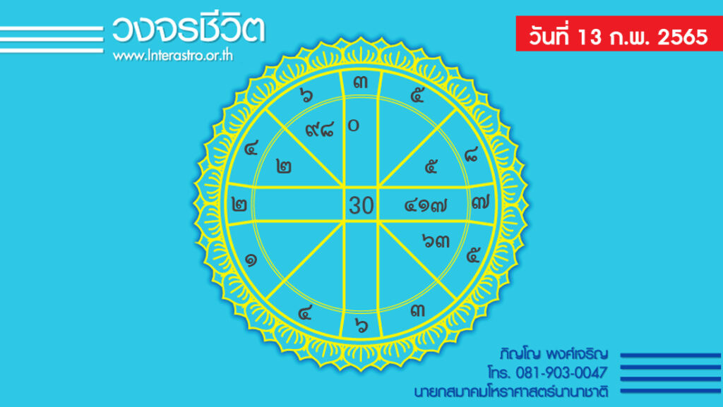 สุริยคติกาล วันที่ 13 กุมภาพันธ์ พ.ศ. 2565 ค.ศ. 2022 จันทร คติกาล ตรงกับวันอาทิตย์ ขึ้น 12 ค่ำ เดือน 3 ปีฉลู ตรีศก จุลศักราช 1383 อาทิตย์อุทัย เวลา 06.42 น. เที่ยงจริง เวลา 12.33 น. อาทิตย์ตก เวลา 18.22 น. จันทร์ตก เวลา 03.59 น.