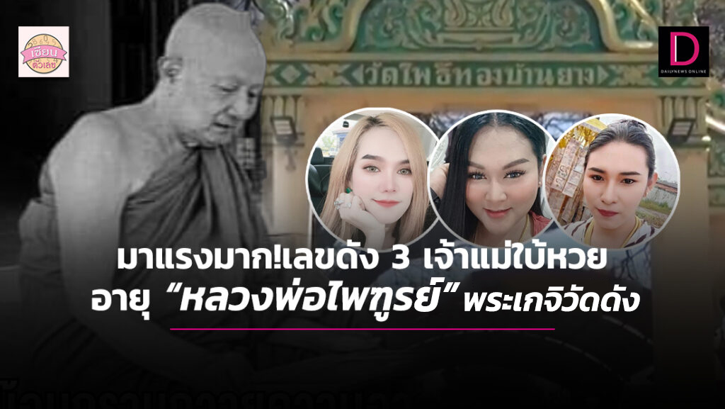 ส่วนงวดนี้นางไม้ก็มีเลขเด็ดมาฝากกันอีกเช่นเคย โดยงวดนี้เลขมงคลจะเป็นเลข 89 ซึ่งเป็นเลขอายุของ พระครูใบฎีกาไพฑูรย์ จิตปุญโญ วัดโพธิ์ทองบ้านยาง ต.บ้านยาง อ.เมือง จ.บุรีรัมย์ ที่ละสังขารไปเมื่อวันที่ 24 ก.พ.65 ที่ผ่านมา โดยท่านละสังขารอย่างสงบ ในท่านั่งสมาธิกัมฐานอยู่บนเก้าอี้ภายในกุฏิ โดยต่างเชื่อว่าหลวงพ่อไพฑูรย์ละสังขารในท่านั่งสมาธิเป็นสิ่งอัศจรรย์ และเป็นผู้มีบุญ เนื่องจากผ่านมาท่านไม่เคยมีประวัติเจ็บป่วยถึงขั้นต้องเข้ารักษาตัวที่ รพ.