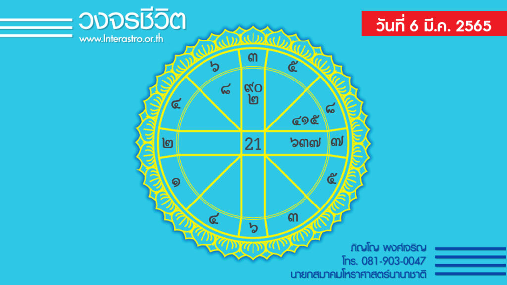 สุริยคติกาล วันที่ 6 มีนาคม พ.ศ. 2565 ค.ศ. 2022 จันทร คติกาล ตรงกับวันอาทิตย์ ขึ้น 4 ค่ำ เดือน 4 ปีฉลู ตรีศก จุลศักราช 1383 อาทิตย์อุทัย เวลา 06.33 น. เที่ยงจริง เวลา 12.30 น.อาทิตย์ตก เวลา 18.27 น. จันทร์ตก เวลา 21.25 น.