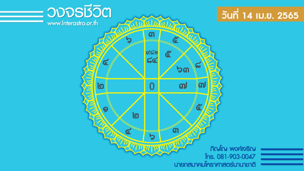สุริยคติกาล วันที่ 14 เมษายน พ.ศ. 2565 ค.ศ. 2022 จันทรคติกาล ตรงกับวันพฤหัสบดี ขึ้น 13 ค่ำ เดือน 5 ปีขาล ตรีศก จุลศักราช 1383 อาทิตย์อุทัย เวลา 06.06 น. เที่ยงจริง เวลา 12.19 น. อาทิตย์ตก เวลา 18.31 น.จันทร์ตก เวลา 04.28 น.