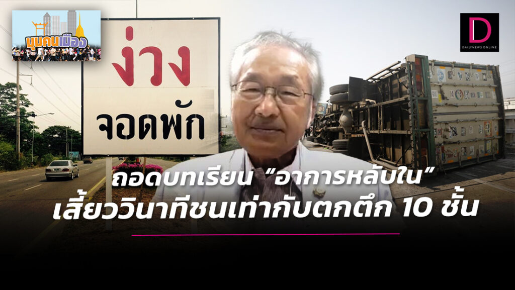 “30 กว่าปีที่แล้ว สมัยเรียนอยู่ที่อเมริกา มีเคสคนขับรถหลับในชนเด็กเสียชีวิต ตอนแรกศาลตัดสินว่าคนขับไม่ผิด เพราะเป็นเรื่องที่ร่างกายควบคุมตัวเองไม่ได้ แต่แม่ของเด็กคนนี้ออกมาต่อสู้ จนในที่สุดศาลตัดสินว่าผู้ขับขี่คนนี้มีความผิด เพราะการหลับในเป็นต้นตอนำไปสู่อุบัติเหตุ และกำหนดเป็นความผิดตั้งแต่นั้นเป็นต้นมา อยากให้สิ่งนี้เกิดขึ้นกับบ้านเราด้วย” นพ.มนูญยกตัวอย่าง