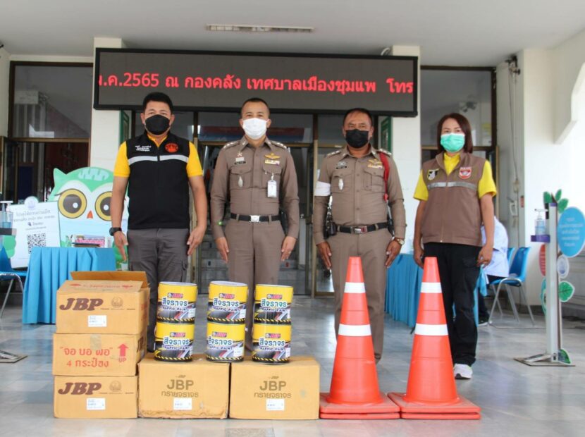 พ.ต.อ.รัตนสุข คำวงศ์ ผกก.สภ.ชุมแพ จ.ขอนแก่น รับมอบอุปกรณ์ที่ใช้ในงานจราจร เพื่ออำนวยความสะดวก ช่วยเหลือประชาชน ที่ได้รับการสนับสนุนจากจากเทศบาลเมืองชุมแพ โดยมีจ่าสิบเอกมนตรี สุวรรณสิงห์ หัวหน้าสำนักปลัดเทศบาล เป็นตัวแทนมอบ ณ อาคารสำนักงานเทศบาลเมืองชุมแพ