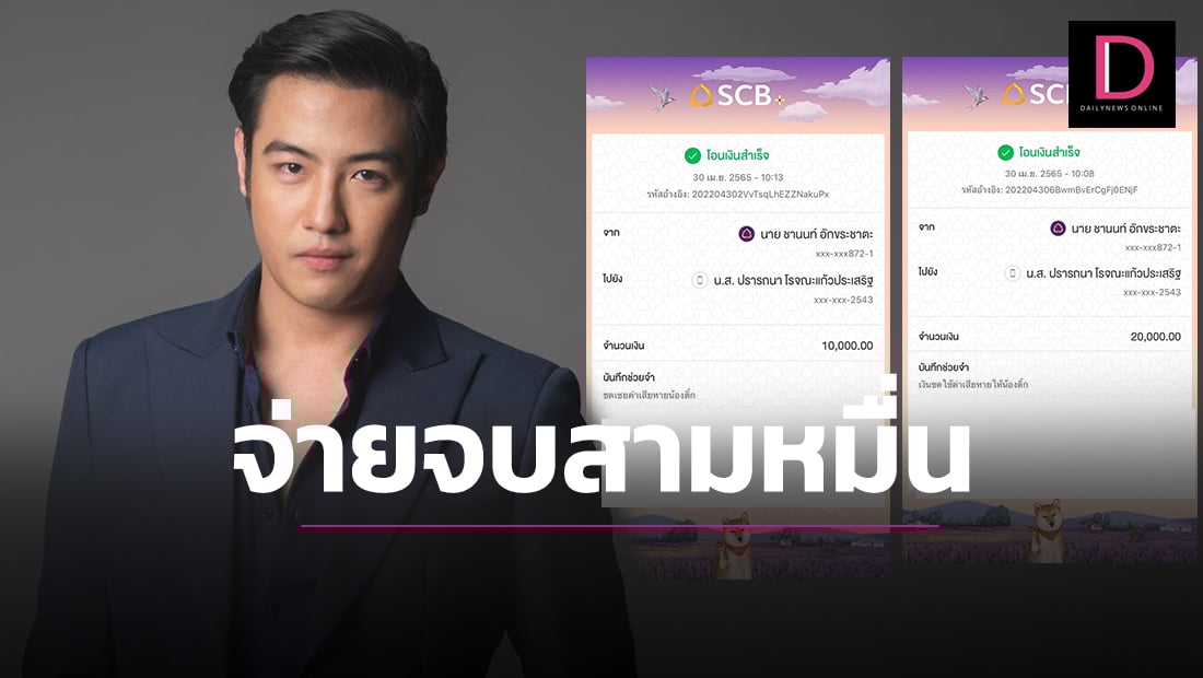 ก่อนที่ต่อมาทางเพจ หมายจับกับบรรจง ของ บรรจง ชีวมงคลกานต์ ผู้ประกาศข่าวชื่อดัง ได้อัพเดทว่าขุนได้โอนค่าเสียหายให้คู่กรณีเรียบร้อยแล้ว โดยโพสต์หลักฐานการโอนเงินเป็นจำนวน 2 ครั้ง ครั้งแรก 20,000 บาท และครั้งที่ 2 อีก 10,000 บาท รวมเป็นเงิน 30,000 บาท นอกจากนี้ยังระบุแคปชั่นว่า โอนแล้วครับ! ขุน ชานนท์ ยอมจบ โอน 3 หมื่นบาท ให้น้องติ๊ก ผช.พยาบาลสาส ค่าเสียหายเฉี่ยวชน ขณะที่เพจ กัน จอมพลัง ของนาย นายกัณฐัศว์ พงศ์ไพบูลย์เวชย์ ที่ได้เข้ามาช่วยเหลือผู้เสียหาย ก็ได้โพสต์หลักฐานที่ขุนโอนเงินค่าเสียหายแล้วเช่นกัน พร้อมระบุข้อความ น้องได้รับเงินเรียบร้อยแล้วครับ เรื่องเล็กนิดเดียว เราผิดเยียวยาดูแล ก็จบแค่นี้ง่ายๆ ไม่ต้องรอนักข่าวเยอะ