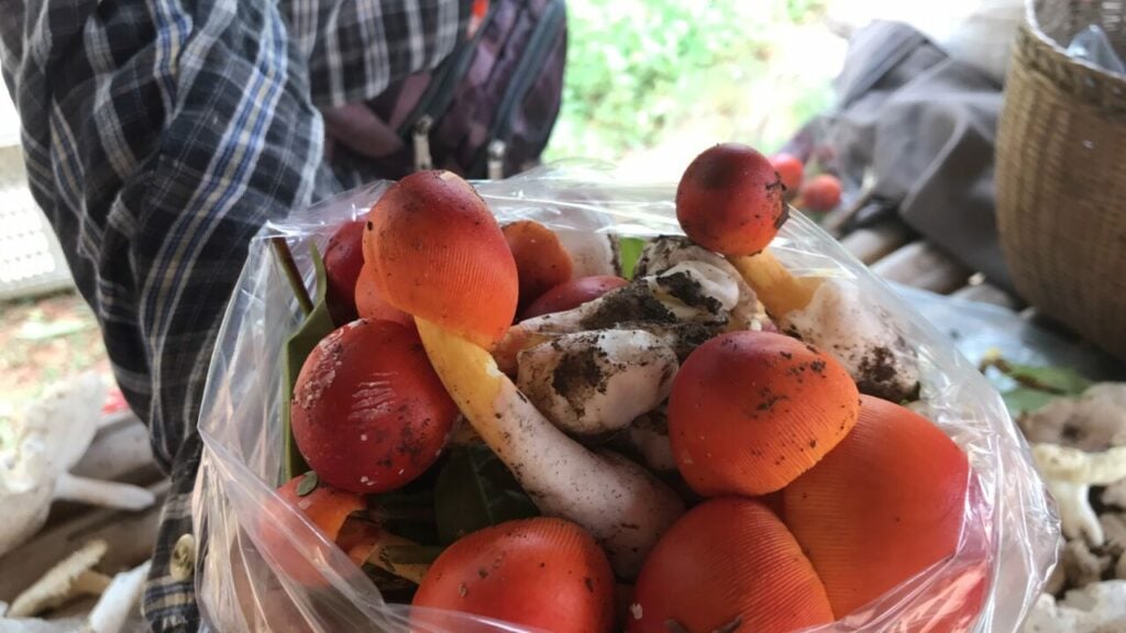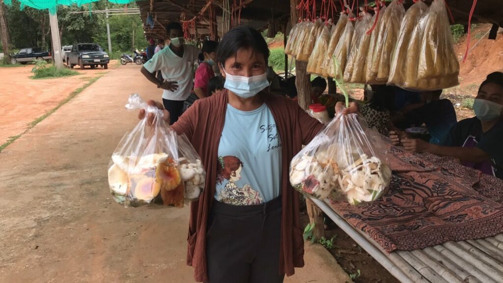 ที่ จ.ชัยภูมิ หลังจากที่มีฝนตกลงมาอย่างต่อเนื่องในหลายพื้นที่ ทำให้ในช่วงนี้จะมีเห็ดป่าโผล่ขึ้นออกมาชูช่อดอกให้เห็นเป็นจำนวนมาก ในผืนป่าใกล้บ้านและชุมชน ชาวบ้านส่วนใหญ่จึงหันมาใช้ชีวิตตามวิถีชุมชนภูมิปัญญาท้องถิ่น ที่มีเคยปฏิบัติสืบทอดต่อกันมา เพื่อใช้เวลาว่างจากการทำนาทำไร่ หรือขณะที่อยู่บ้านในช่วงโควิด-19 ระบาด เพื่อไม่เจอผู้คน จึงถือโอกาสเข้าไปในป่าหาเห็ดมาปรุงอาหาร และขายสร้างรายได้ให้กับครอบครัว ในช่วงนี้ได้เป็นอย่างดีไม่น้อยกว่า 500-1,000 บาทเลยทีเดียว