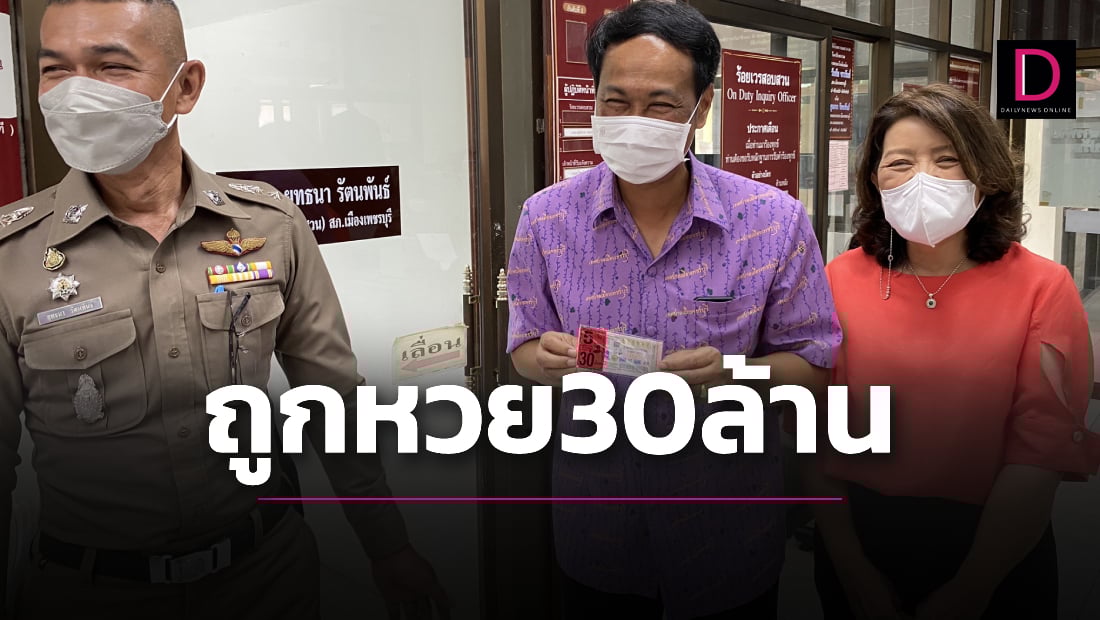 เมื่อวันที่ 3 พ.ค. ที่สภ.เมืองเพชรบุรี นายกิตติพงษ์ เทพพานิช นายกเทศมนตรีเมืองเพชรบุรี พร้อมด้วย นางสมคิด เทพพานิช ภรรยา ได้เดินทางมาลงบันทึกประจำวันไว้เป็นหลักฐาน หลังจากตรวจสลากกินแบ่งรัฐบาลที่ซื้อมาแล้วพบว่าถูกรางวัลที่ 1 งวดประจำวันที่ 2 พ.ค.65 หมายเลข 658642 ชุด 5 ใบ รวมเงินรางวัล 30 ล้านบาท