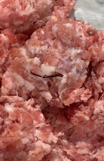 ซึ่งคลิปดังกล่าวเป็นคลิปที่ถ่ายบริเวณที่ขายเนื้อหมู โดยเจ้าของคลิปวิดีโอกำลังจะเลือกเนื้อหมูบดเพื่อนำไปทำอาหารเป็นผัดกะเพรา แต่ปรากฏว่าเจอขึ้นส่วนปริศนาแปลกปลอมที่เนื้อหมูบด ซึ่งเมื่อซูมกล้องเข้าไป และมองชัดๆ ชิ้นส่วนปริศนามีลักษณะคล้ายกับชิ้นส่วนขาของ “แมลงสาบ” ทำให้เจ้าของคลิปถึงกลับอุทานออกมาทันที