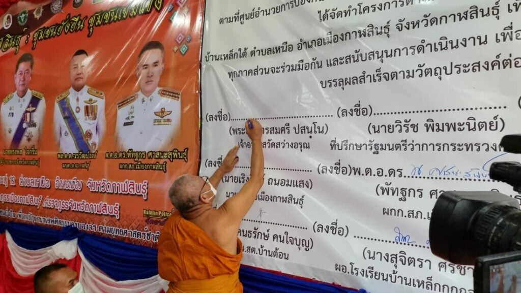 ที่วัดสว่างอรุณ บ้านเหล็กใต้ หมู่ 12 ต.เหนือ อ.เมืองกาฬสินธุ์ จ.กาฬสินธุ์ นายทรงพล ใจกริ่ม ผวจ.กาฬสินธุ์ มอบหมายให้ นายศุภศิษย์ กอเจริญยศ รอง ผวจ.กาฬสินธุ์ เป็นประธานในพิธีเปิดโครงการดำเนินการงานชุมชนยั่งยืน เพื่อแก้ปัญหายาเสพติดแบบครบวงจร ตามยุทธศาสตร์ชาติ โดยมี พ.ต.อ.ชนะเกียรติ วงศ์แสงเทียน รอง ผบก.ภ.จว.กาฬสินธุ์, พ.ต.อ.ดร.พัทฐกร ศาสนะสุพินธ์ ผกก.สภ.เมืองกาฬสินธุ์, พ.ต.ท.อภิชาติ ประพิณ รอง ผกก.ป.สภ.เมืองกาฬสินธุ์, พ.ต.ท.สุวิทย์ สีทา สวป.สภ.เมืองกาฬสินธุ์, ผู้นำองค์กรปกครองส่วนท้องถิ่น กำนัน ผู้ใหญ่บ้าน อสม. และประชาชนในพื้นที่ ร่วมกิจกรรมเป็นจำนวนมาก