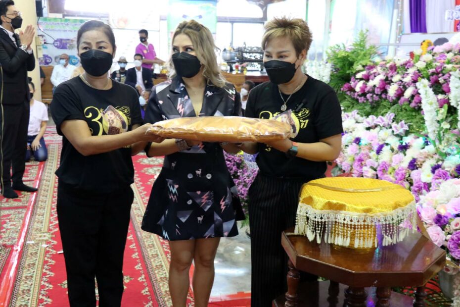 จากนั้น นายสุวัฒน์ เหลืองวิลัย ไวยาวัจกร นายจักกฤษณ์ เหลืองวิลัย กรรมการวัดทับกระดาน ได้มอบทุนการศึกษา 350 ทุน ให้แก่เด็กนักเรียน บริเวณศาลาการเปรียญสุธรรมรัตราษฎร์บำรุง วัดทับกระดาน โดยในปีนี้ไร้เงาของ นายสรภพ ลีละเมฆินทร์ หรือ “เพชร พุ่มพวง” ลูกชายหัวแก้วหัวแหวนเพียงคนเดียวของราชินีลูกทุ่งคนดัง มีเพียง นายไกรสร ลีละเมฆินทร์ (แสงอนันต์) อดีตสามีสุดที่รักได้มาร่วมงาน