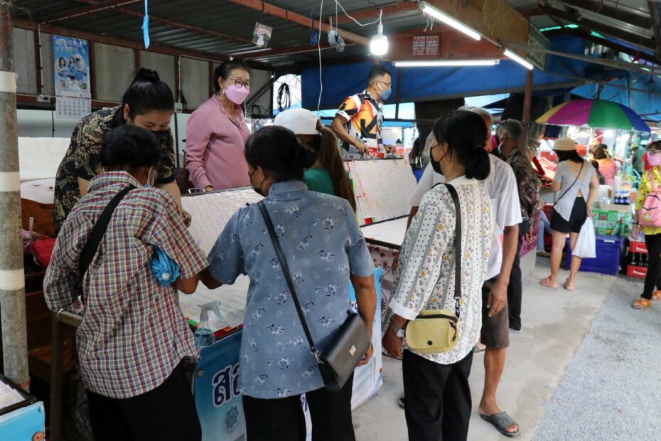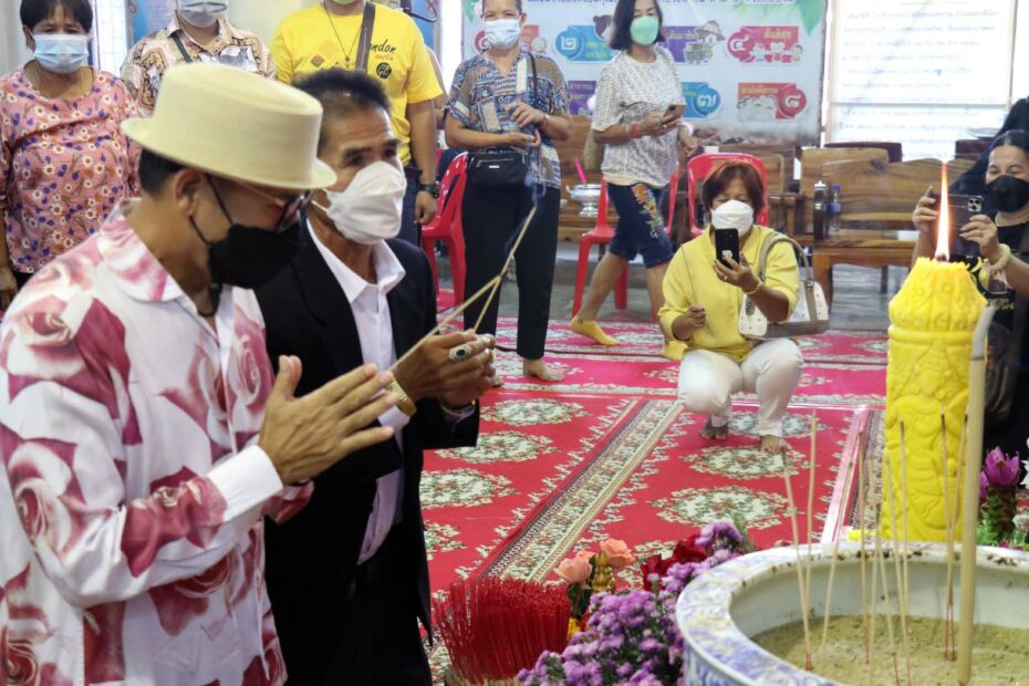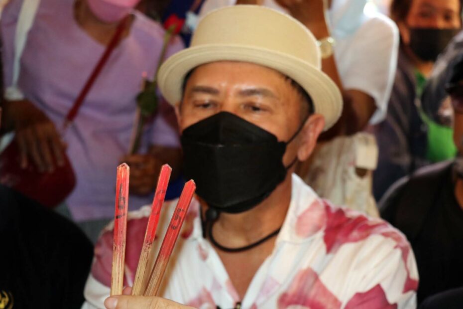 ขณะเดียวกันสิ่งที่ขาดไม่ได้คือ การเขย่าเซียมซี ขอเลขเด็ด โดยวันนี้ นายไกรสร พร้อมคณะอดีตนักร้อง นักดนตรี และหางเครื่องวงดนตรีลูกทุ่ง พุ่มพวง ดวงจันทร์ ได้มาที่ศาลาริมสระน้ำ หลังวัดทับกระดาน พร้อมนำดอกกุหลาบสีแดงมากราบไหว้บูชาขอพรกับหุ่นที่ 1 พุ่มพวง จากนั้น นายไกรสร ได้อธิษฐานจิตบอกกล่าวดวงวิญญาณพุ่มพวง ขอให้มาบันดาลโชคลาภให้กับแฟนเพลง ก่อนเขย่าเซียมซีได้เลข 6-8-5 ตามลำดับ ท่ามกลางความสนใจบรรดาคอนักเสี่ยงโชคที่มาร่วมงานกันขึ้นมาทันที ต่างจำจ้องจดเลขดังกล่าวไปแทงหวยเสี่ยงโชค หาซื้อลอตเตอรี่หวังรวย จนหมดเกลี้ยงทุกแผงที่เข้ามาเร่ขายในบริเวณวัดทับกระดาน และจังหวัดใกล้เคียง