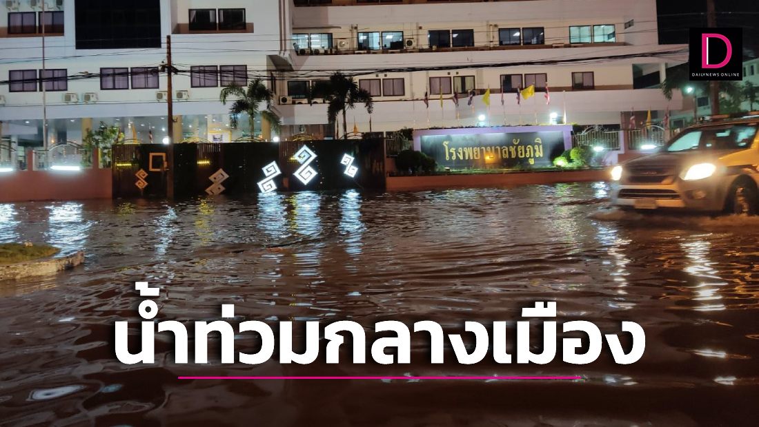 เมื่อวันที่ 12 ก.ค. ผู้สื่อข่าวรายงานว่า ช่วงค่ำวานนี้ (11 ก.ค.) จนถึงกลางดึกคืนที่ผ่านมาในพื้นที่ จ.ชัยภูมิ มีพายุฝนพัดตกกระหน่ำจนเกิดมีน้ำท่วมสูงในพื้นที่ลุ่มต่ำหลายจุดโดยเฉพาะหน้าศาลากลางจังหวัด ระดับน้ำท่วมสูง 50-60 ซม. ส่วน 5 ชุมชนเขตเทศบาลเมืองได้แก่ ชุมชนตลาด ชุมชนกุดแคน โนนสมอ หนองบ่อ หนองหลอด และโนนสาทร ระดับท่วมขังสูงกว่า 50-70 ซม. นอกจากนี้ยังพบน้ำท่วมบริเวณ ตลาดสดเทศบาล โรงเรียน ส่วนราชการและโซนเศรษฐกิจที่ตั้งอยู่ใจกลางเมืองชัยภูมิอีกด้วย จนทำให้รถขนาดเล็กไม่สามารถผ่านเข้าออกได้อีกด้วย อย่างไรก็ตาม ทางเจ้าหน้าที่ฝ่ายงานเกี่ยวข้องได้ติดตั้งเครื่องสูบน้ำเพิ่มเติม เพื่อสูบน้ำระบายออกนอกตัวเมืองลงลำชีมาต่อเนื่องตลอด 24 ชม. และคาดว่าหากไม่มีน้ำจากฝนตกลงมาเพิ่ม จะสามารถระบายน้ำออกนอกตัวเมืองได้ในอีกไม่เกิน 2-3 วันนี้