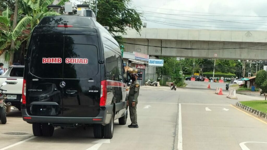 โดยทราบชื่อชายคนดังกล่าวชื่อเล่นว่า ชัย เมื่อตำรวจค้นที่รถเข็นเสร็จแล้วได้ขอค้นกระเป๋าสะพายข้าง แต่นายชัยได้ปฏิเสธ ก่อนจะมีการวิ่งไล่จับชุลมุน จากนั้นนายชัย ได้เปิดกระเป๋าพร้อมควักระเบิดออกมา โดยได้ใช้นิ้วสอดเข้าไปในสลักก่อนจะวิ่งไปที่ร้านซ่อมจักรยานยนต์พร้อมจับหญิงคนหนึ่งมาเป็นตัวประกัน ซึ่งขณะนี้ พล.ต.ต.นพเก้า โสมนัส ผบก.ภ.จว.ขอนแก่น พ.ต.อ.ปรีชา เก่งสาริกิจ ผกก.สภ.เมืองขอนแก่น ได้พยามยามเกลี้ยกล่อม โดยตำรวจ EOD ได้นำหุ่นยนต์เก็บกู้ระเบิดมาเตรียมพร้อมหากเกิดเหตุไม่คาดฝัน.