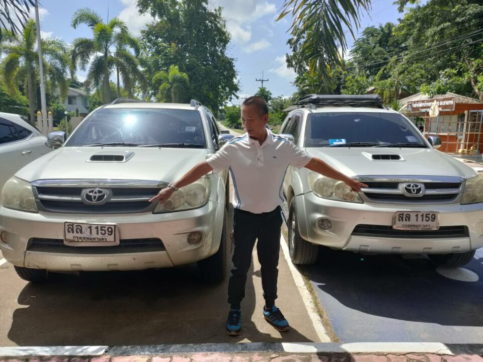 เมื่อเวลา 17.00 น. วันที่ 5 ส.ค. พล.ต.ต.รอย อิงคไพโรจน์ ผู้ช่วย ผบ.ตร./รรท.ผบช.ภ.2 พล.ต.ต.นิธิธร จินตกานนท์ รอง ผบช.ภ.2 ในฐานะหัวหน้าศูนย์ปราบปรามการโจรกรรมรถยนต์ (ศปจร.ภาค2) พล.ต.ต.ณัฐพงษ์ สัตยานุรักษ์ ผบก.ภ.จว.สระแก้ว สั่งการให้ พ.ต.อ.จตุรภัทร สิงหัษฐิต ผกก.สส.ภ.จว.สระแก้ว นำกำลังเข้าตรวจยึดรถโตโยต้า ฟอร์จูนเนอร์ สีบรอนซ์ รุ่น 3.0 V W PS-A/T หมายเลขตัวรถ MRoYZ59G200034867 ติดแผ่นป้ายทะเบียน สล 1159 กรุงเทพมหานคร และรถโตโยต้า แฮริเออร์ สีขาว หมายเลขตัวรถZSU 600024203 ติดแผ่นป้ายทะเบียน 4 กฎ 2765 กรุงเทพมหานคร จอดอยู่ในบ้านเลขที่ 145 หมู่ 16 ต.พระเพลิง อ.เขาฉกรรจ์ จ.สระแก้ว หลังมีผู้ร้องเรียนว่ามีการสวมทะเบียนปลอม จากการตรวจค้นพบนายสุชาติ ศรีเทพ หรือ กำนันเหม่ง กำนันตำบลพระเพลิง อ.เขาฉกรรจ์ จ.สระแก้ว และยังพบนายวุฒิชัย ศรีเทพ อายุ 28 ปี หลายชายกำนัน อยู่ด้วยจึงยึดรถทั้ง 2 คันมาตรวจสอบ