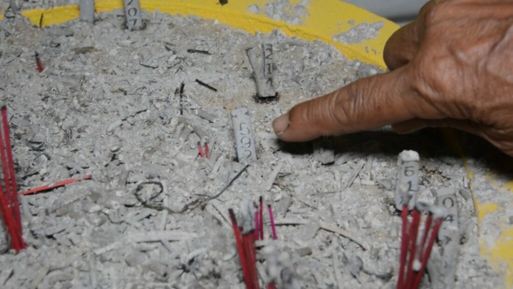 นางอ้วน มั่นปาน อายุ 60 ปี กล่าวว่า ตนมาถือศีลที่วัดหัวเขาเป็นประจำ ก่อนหน้านี้มาเก็บกวาดในศาลา ขณะถูพื้นที่ข้างแม่นางกวักสายตาเหลือบไปเห็นตัวเลขขึ้นที่ตามองค์ ตามฐาน จึงนำไปเสี่ยงโชคถูกหวยมา 3 งวดติด จนเป็นที่กล่าวขานของชาวบ้าน ส่วนในวันนี้นำพวงมาลัยมาถวายซึ่งตนเห็นตัวเลขที่ฐานแม่นางกวักเป็นเลข 74 รวมถึงชาวบ้านบางคนที่มาใช้โทรศัพท์มือถือถ่ายภาพพร้อมขยายดูเห็นเลข 124 บางคนเห็นเลข 572 ส่วนบางคนก็จุดธูปเสี่ยงทายนำไปเสี่ยงโชคหวังรวยในงวดนี้