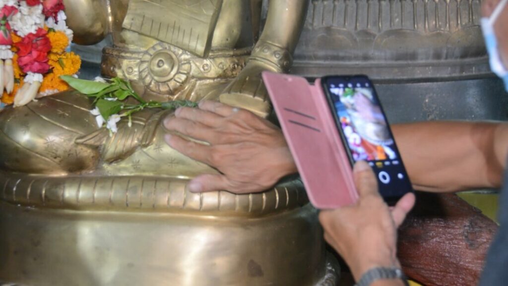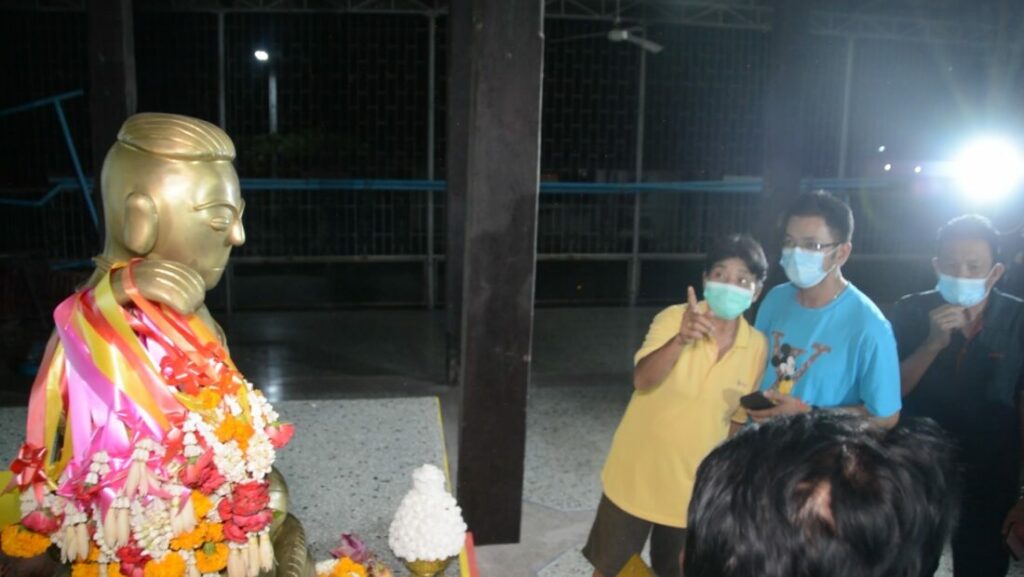 เมื่อวันที่ 29 ก.ค. ที่วัดหัวเขา หมู่ 2 ต.หัวเขา อ.เดิมบางนางบวช จ.สุพรรณบุรี บรรดาคอหวยนักเสี่ยงโชคแห่มากราบไหว้ขอโชคลาภเลขเด็ดกับ “แม่นางกวัก” องค์ทองเหลือง ขนาดความสูง 18 x 34 นิ้ว ที่ประดิษฐานในศาลาหลวงปู่อิ่ม สิริปุญโญ หลังมีผู้โชคดีที่มาทำความสะอาดแม่นางกวักได้เลขเด็ดไปซื้อหวยถูกรางวัลมา 3 งวดติดต่อกัน