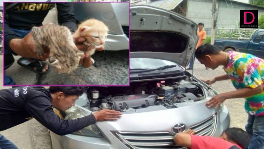 เมื่อวันที่ 29 พ.ค. ผู้สื่อข่าวรายงานว่า ชาวบ้าน อ. เมือง จ.ศรีสะเกษ จำนวนมากแห่ไปมุงดูรถเก๋งสีบรอนซ์เงิน ทะเบียนกง 4446 ศรีสะเกษ ของ นายพรมรินทร์ สงเมือง อายุ 39 ปีหลังจากได้ยินเสียงแมวปริศนาร้องออกมาจากห้องเครื่อง จึงเปิดฝากระโปรงส่องหา จนพบลูกแมวน้อย 2 ตัวติดอยู่ภายในเลยแจ้งเจ้าหน้าที่มูลนิธิศรีสะเกษสงเคราะห์ ให้นำอุปกรณ์เข้ามาช่วยเหลือ