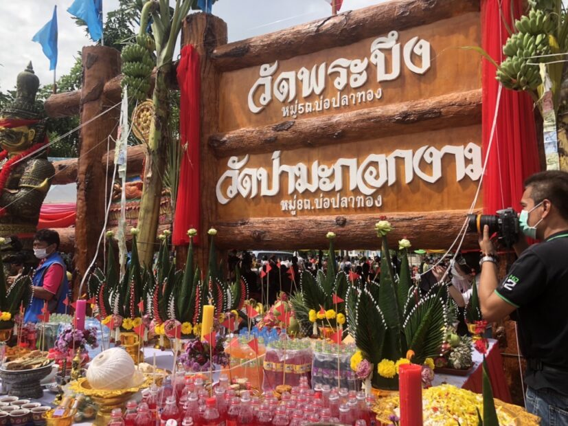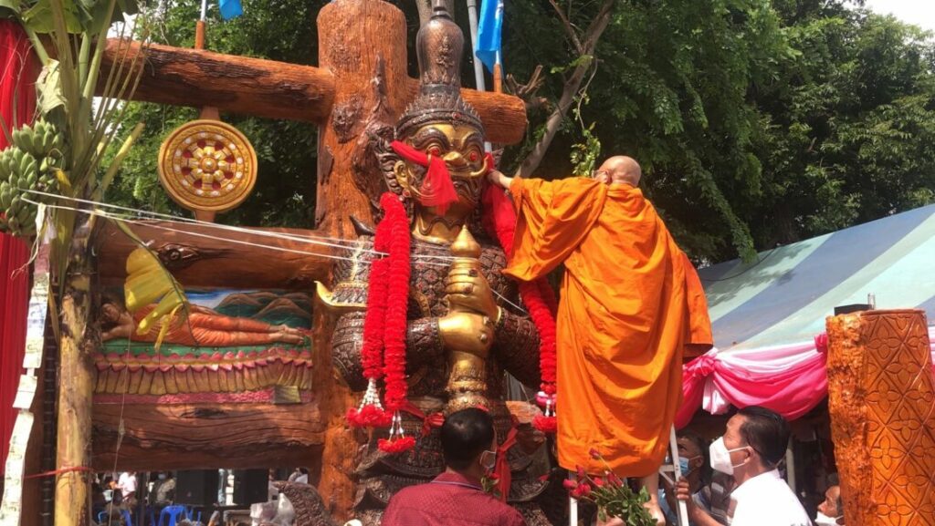 เมื่อวันที่ 13 ส.ค. ผู้สื่อข่าวรายงานว่า ที่วัดพระบึง ต.บ่อปลาทอง อ.ปักธงชัย จ.นครราชสีมา เจ้าคณะอำเภอปักธงชัย เป็นประธานฝ่ายสงฆ์ ได้จัดทำพิธีเปิดป้ายและพิธีบวงสรวงเบิกเนตรท้าวเวสสุรรณ จำนวน 2 องค์ ความสูง 3.50 เมตร ที่ประดิษฐานไว้ที่ข้างป้ายหน้าทางเข้าวัดพระปึงและวัดป่ามะกอกงาม โดยมีศิษยานุศิษย์ และชาวบ้านเดินทางมาร่วมงานจำนวนมาก
