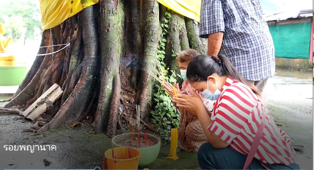 นายสมศักดิ์ ไชยเสริฐ อายุ 58 ปี ผู้ช่วยผู้ใหญ่บ้าน กล่าวว่า ตอนแรกที่เณรไปบอกก็รู้สึกตกใจมาก เพราะไม่เคยเกิดเหตุการณ์แบบนี้ขึ้นเลย ตนเชื่อว่าเป็นรอยพญานาคและบริเวณที่เกิดรอยพญานาคนั้น ได้บูรณะปรับปรุงเปลี่ยนหลังคาทาสีใหม่ และปั้นรูปพญานาคเพิ่มขึ้นมาใหม่ พร้อมกับประดับไฟให้ดูสวยงามซึ่งสร้างเสร็จเดือนที่แล้ว โดยมีการทำพิธีบวงสรวงไปแล้วหลังจากที่ชาวบ้านทราบข่าวเมื่อเช้านี้ ก็มากราบไหว้ขอพรขอโชคกันเยอะมากและก็ต่างพากันตีเป็นตัวเลขกันไป โดยตนก็ได้จุดธูปไหว้ขอพรขอโชคและซื้อลอตเตอรี่เสี่ยงเอาไว้ เผื่อท่านจะให้โชค