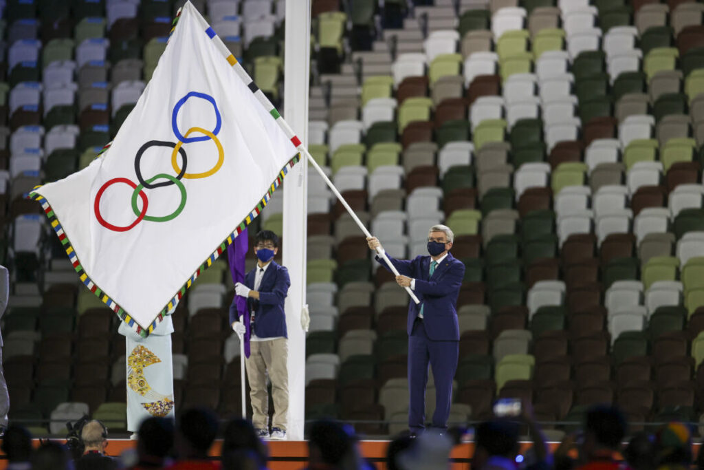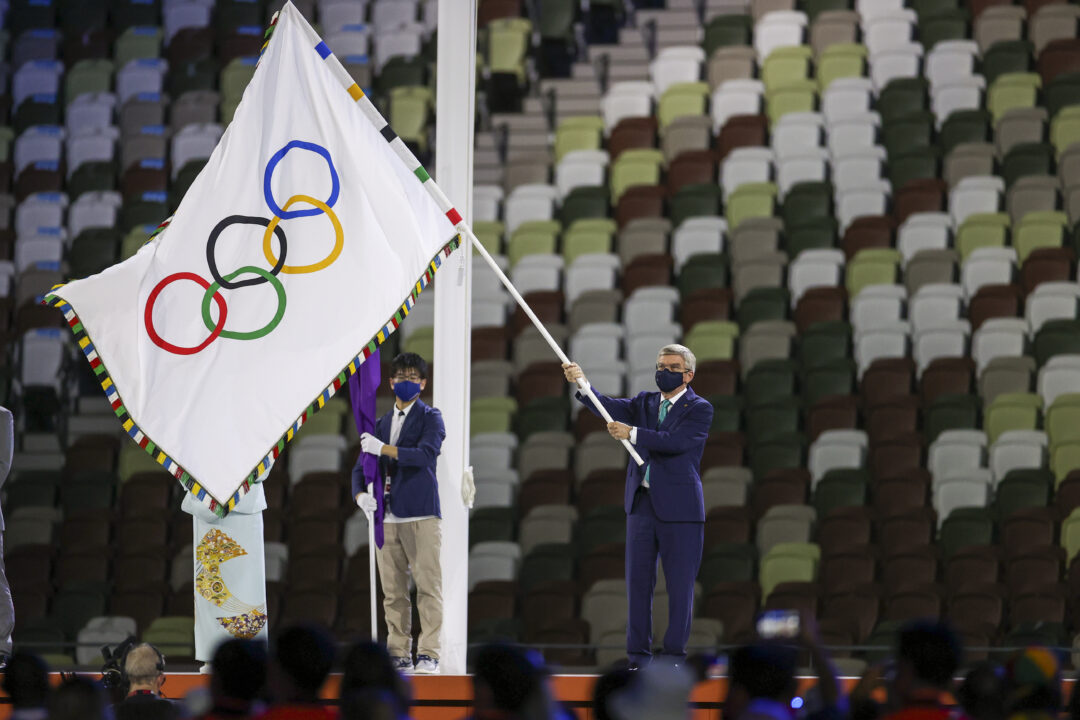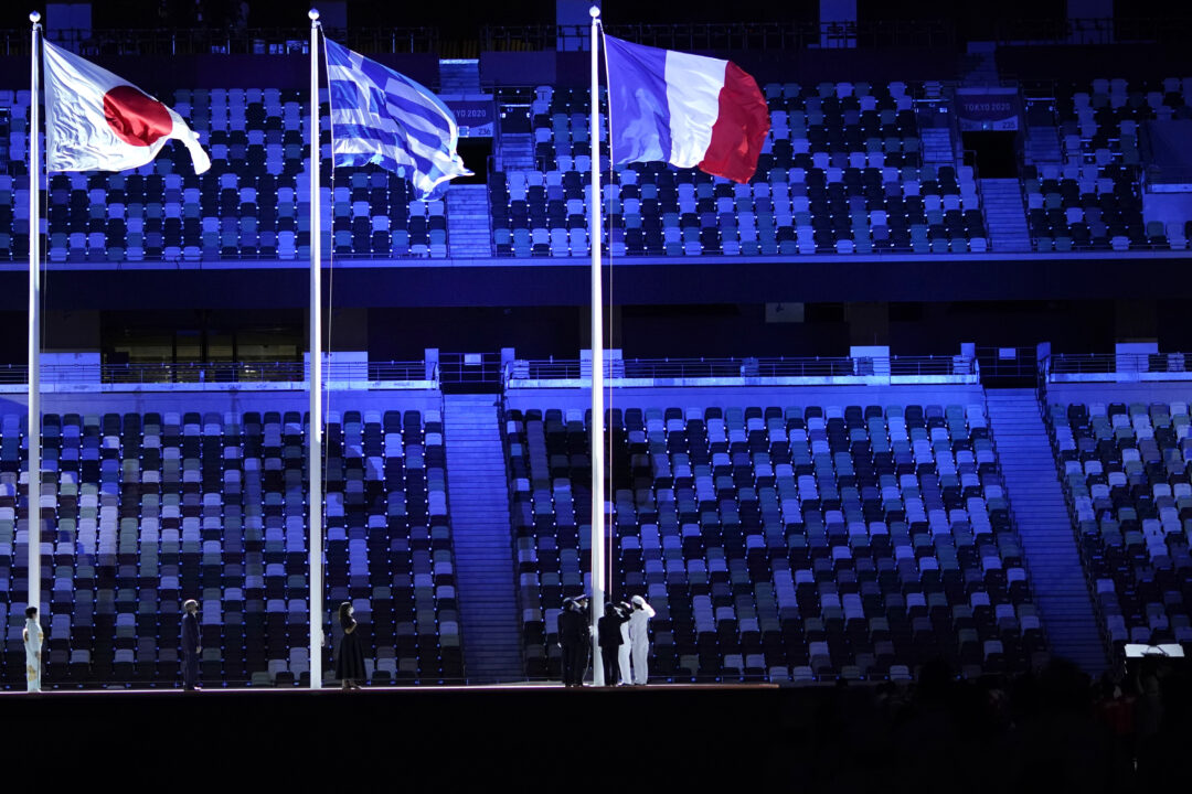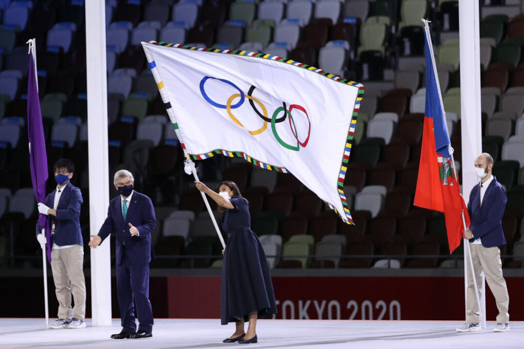ด้านพิธีการรับธงเจ้าภาพครั้งต่อไป ฝรั่งเศส เจ้าภาพโอลิมปิกเกมส์ ปารีส 2024 ที่จะจัดในอีก 3 ปีข้างหน้าถูกส่งต่อโดย ยูริโกะ โคอิเคะ ผู้ว่าราชการกรุงโตเกียว มอบให้ โธมัส บาค ประธานคณะกรรมการโอลิมปิกสากล (ไอโอซี) ส่งมอบให้ แอนน์ ฮิดัลโก นายกเทศมนตรีกรุงปารีสที่เดินทางมารับมอบธงด้วยตัวเอง