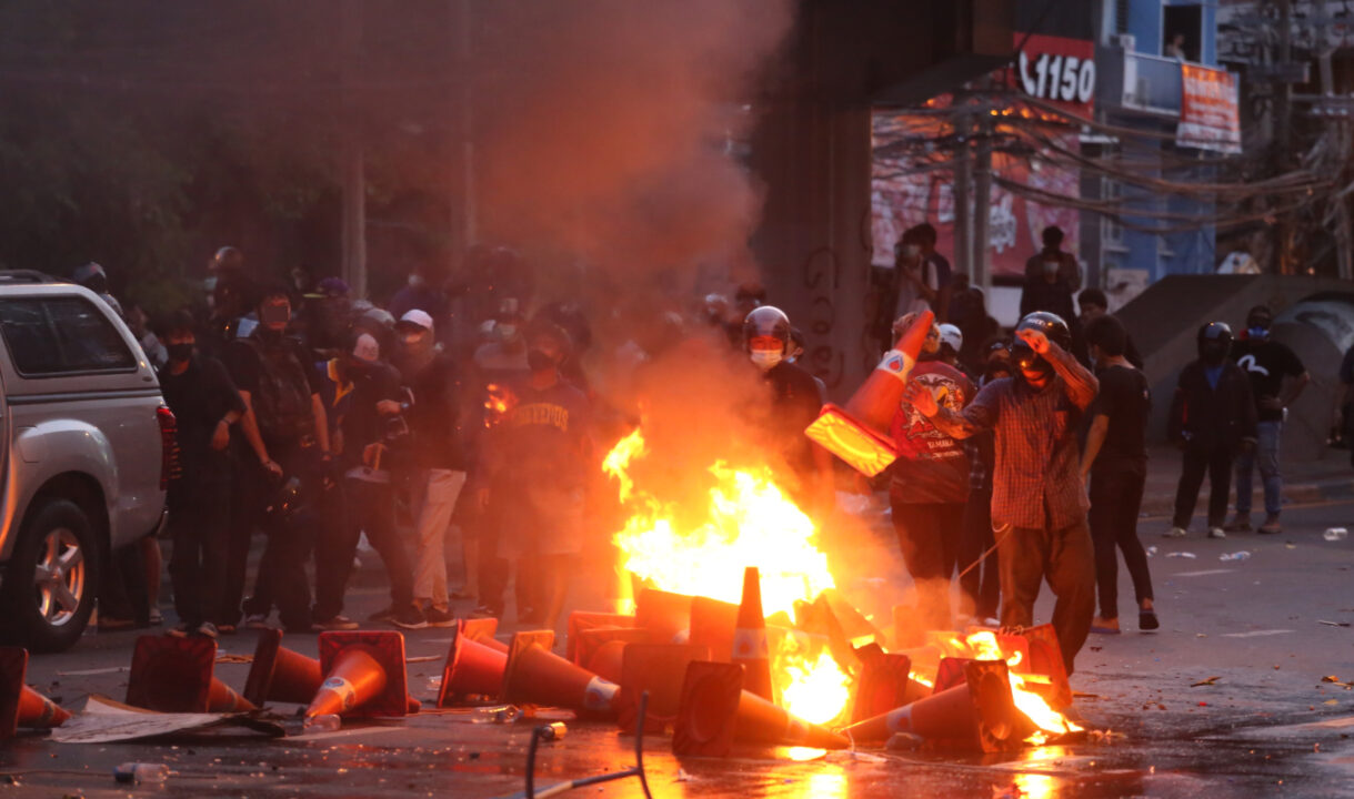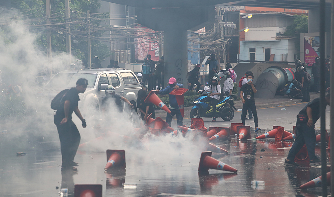 กลุ่มที่ 5 เวลาประมาณ 20.35 น. สน.ตลิ่งชัน จับกุมชาย 5 ราย คือ อายุ 18-30 ปี ได้พร้อมของกลาง วัตถุระเบิด (ระเบิดปิงปอง) หุ้มด้วยเทปสีดำ จำนวน 4 ลูก, กระเป๋าสะพายข้างสีน้ำตาล จำนวน 2 ใบ และอาวุธมีดพับ ที่บริเวณหน้าบริษัท TP โลจิสติกส์ แขวงฉิมพลี เขตตลิ่งชัน กรุงเทพฯ และบริเวณหน้าบริษัทตลิ่งชัน ฮอลด้า ออโตโมบิล จำกัด แขวงฉิมพลี เขตตลิ่งชัน แจ้งข้อหา “มีวัตถุระเบิดไว้ในครอบครองโดยผิดกฎหมาย (เฉพาะผู้ต้องหาที่ 1-2), พกพาอาวุธมีดไปในทางสาธารณะ หรือชุมชน เมือง โดยไม่ได้รับอนุญาตหรือมีเหตุอันควร (เฉพาะผู้ต้องหาที่ 2), ร่วมกันกับพวกหลบหนีมั่วสุมรวมตัวเสี่ยงต่อการแพร่ระบาดโรคติดต่อฝ่าฝืนข้อกำหนดตามประกาศ พ.ร.ก.ฉุกเฉิน”