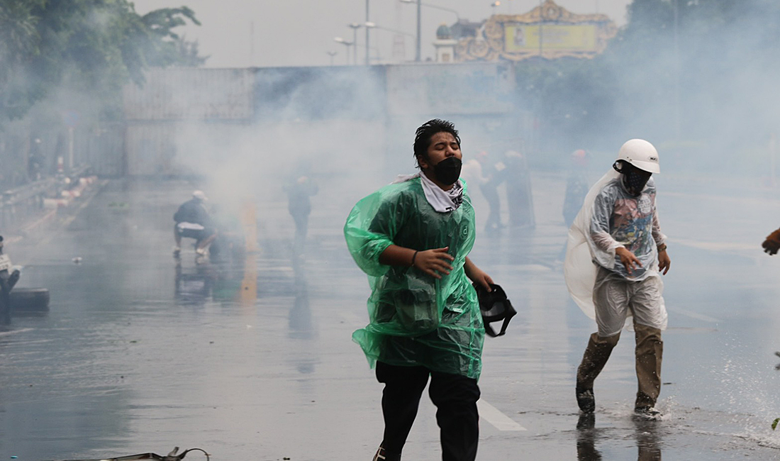 เวลา 15.50 น. กลุ่มผู้ชุมนุมได้ขว้างปาสิ่งของ ขวดน้ำ ก้อนหิน ประทัดยักษ์ และยิงพลุใส่เจ้าหน้าที่ตำรวจ จึงได้จับกุมผู้กระทำผิดได้จำนวนหนึ่ง