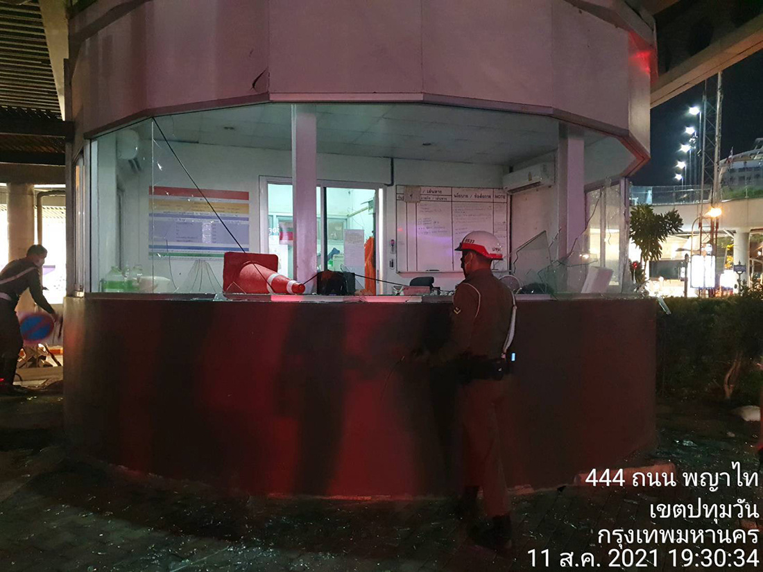 นอกจากนี้ ป้อมตำรวจ สน.ปทุมวัน ที่ตั้งอยู่บริเวณซอยจุฬาฯ 12 ก็ถูกทุบกระจกเสียหายเช่นเดียวกัน ทางเจ้าหน้าที่ตำรวจจึงบันทึกภาพไว้เป็นหลักฐาน เพื่อติดตามตัวผู้ก่อเหตุมาดำเนินคดีตามกฎหมายต่อไป.