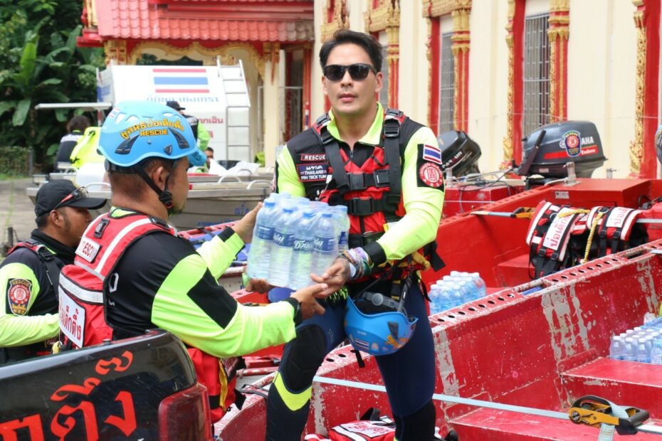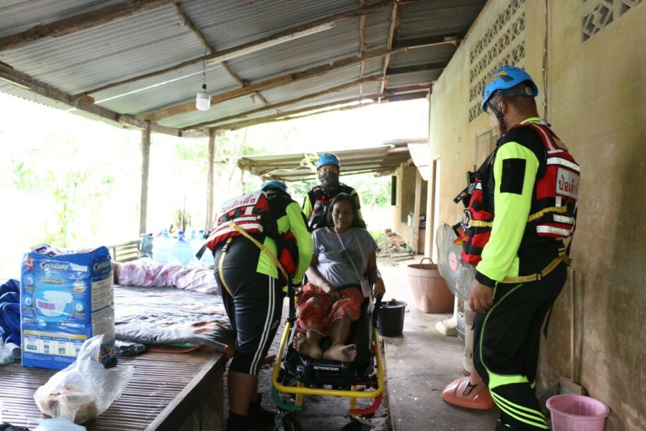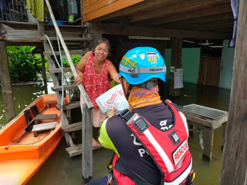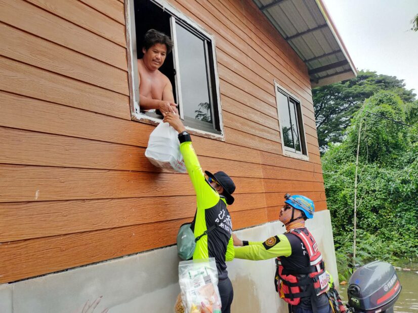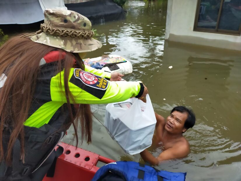 นายสมบูลย์ ขวัญอ่วม หัวหน้าแผนกบรรเทาสาธารณภัย จัดทีมเจ้าหน้าที่-อาสาสมัคร กู้ชีพ-กู้ภัย ลงพื้นที่อพยพ – เคลื่อนย้ายผู้ป่วยออกจากพื้นที่ประสบภัย ไปยังพื้นที่ปลอดภัย รวมถึงจัดทีมประกอบอาหารปรุงสุกบรรจุกล่องพร้อมน้ำดื่ม ถุงยังชีพ ชุดยาเวชภัณฑ์ บรรทุกเรือท้องแบน ลงพื้นที่ออกแจกจ่ายแก่ผู้ประสบภัยบริเวณพื้นที่อำเภอวารินชำราบ และอำเภอเมือง อาทิ บ้านดอนงิ้ว บ้านธานี เป็นต้น โดยมีนายภรัณยู โรจนวุฒิธรรม [แทค ภรัณยู] อาสาสมัครศิลปินมูลนิธิป่อเต็กตึ๊ง และทีมหน่วยกู้ภัยฉะเชิงเทราร่วมปฏิบัติภารกิจในครั้งนี้