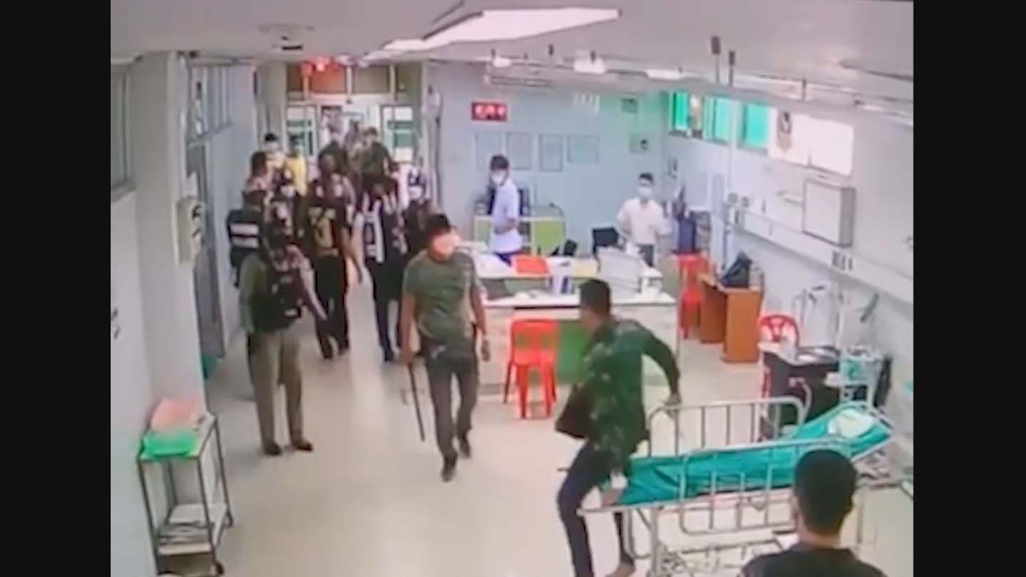 เมื่อวันที่ 12 ส.ค. ผู้สื่อข่าวรายงานว่า ช่วงสายวานนี้ (11 ส.ค.) พ.ต.อ.เกียรติภูมิ สุวรรณไตรย์ ผกก.สภ.เมือง จ.มุกดาหาร รับแจ้งจากเเจ้าหน้ที่ รพ.มุกดาหาร ว่า มีผู้ป่วยจิตเวชเพศชาย อายุประมาณ 30 ปี มีอาวุธมีดพกติดตัวเข้ามาโวยวายอาละวาดในห้องฉุกเฉิน รพ.มุกดาหาร จึงสั่งการให้ พ.ต.ท.สุทธิศักดิ์ สอนสะอาด สว.สส. นำกำลังไปตรวจสอบ เมื่อไปถึงพบชายคนดังกล่าวนอนตะโกนโวยวายส่งเสียงดังอยู่บนเตียงรถเข็นคนไข้ เมื่อเห็นเจ้าหน้าที่เข้ามาจะจับกุม ก็ได้ลุกขึ้้นเดินไปหาเจ้าหน้าที่ โบกมือโวยวาย จากนั้นได้เดินมาที่เตียงคนไข้ก้มลงใส่รองเท้าผ้าใบ พร้อมหยิบมีดในกระเป๋าออกมา ก่อนวิ่งตรงเข้าหาเจ้าหน้าที่ แต่เจ้าหน้าที่ได้ใช้กระบอง และไม้ง่ามตีไปที่หลัง และแขน แล้วรุมเข้าจับกุมตัวไว้ได้ สอบสวนพูดคุยไม่รู้เรื่อง จึงควบคุมตัวรักษาอาการจริตที่โรงพยาบาลมุกดาหารต่อ พร้อมตรวจสอบประวัติผู้ว่าเป็นใครเพื่อติดต่อญาติมาดูแลต่อไป