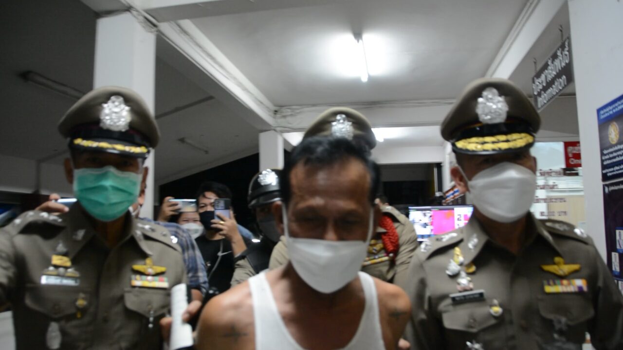 ล่าสุด พล.ต.ต.ชมชวิณ ปุระธนานนท์ ผบก.ภ.จว.สุพรรณบุรี ได้รับการติดต่อว่าผู้ต้องหาอยู่กับเพื่อนสนิทคนหนึ่งกำลังจะพามามอบตัว ต่อมาเพื่อนได้พานายแสนมามอบตัวกับตำรวจและได้ทำการตรวจเชื้อโควิดในแบบ ATK เบื้องต้นไม่พบเชื้อ จากนั้นได้สอบถามมูลเหตุจูงใจ นายแสน กล่าวกับทาง พล.ต.ต.ชมชวิณ ว่าเป็นเรื่องความเครียดในปัญหาครอบครัว ซึ่งก่อนหน้าก็มักมีปัญหากันอยู่บ่อยครั้ง จากนั้นได้พาตัวไปค้นหาอาวุธปืนของกลางที่นายแสนใช้ก่อเหตุและอ้างว่าโยนทิ้งไว้ริมถนน จากการตรวจค้นพบปืนขนาด .38 พร้อมซองหนัง ส่วนปลอกกระสุนปืนได้โยนทิ้งระหว่างทาง